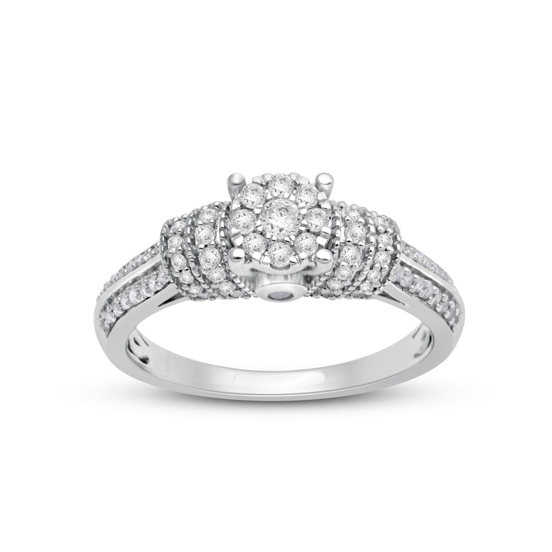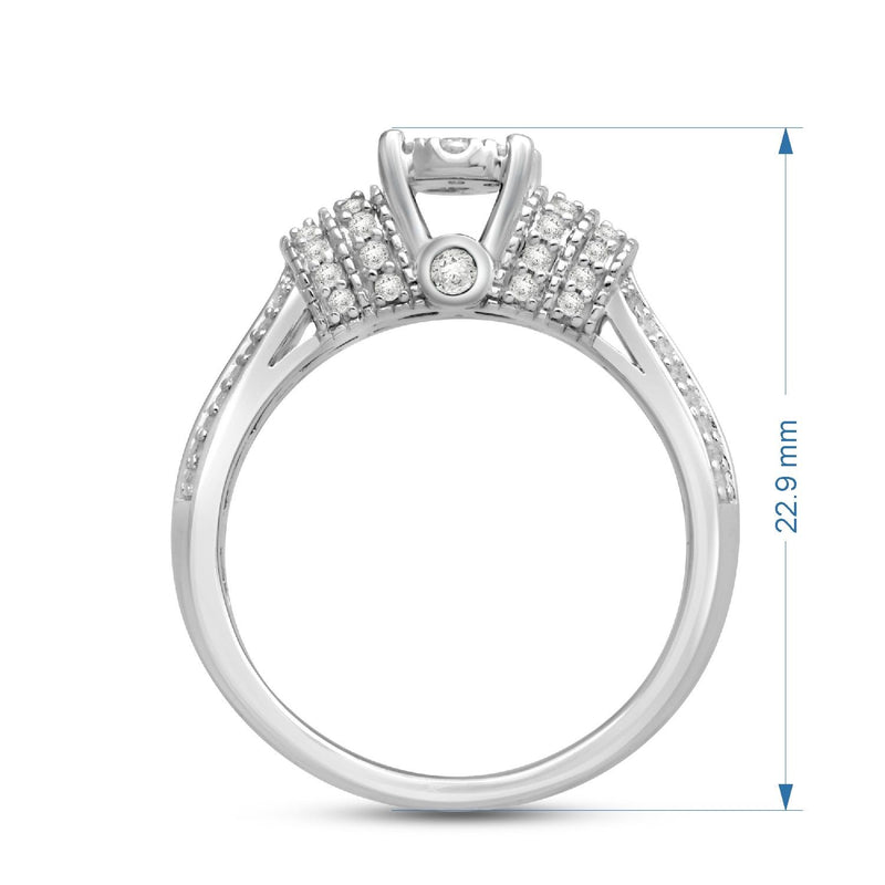 Jewelili Sterling Silver With 1/2 CTTW White Diamonds Composite Head Ring