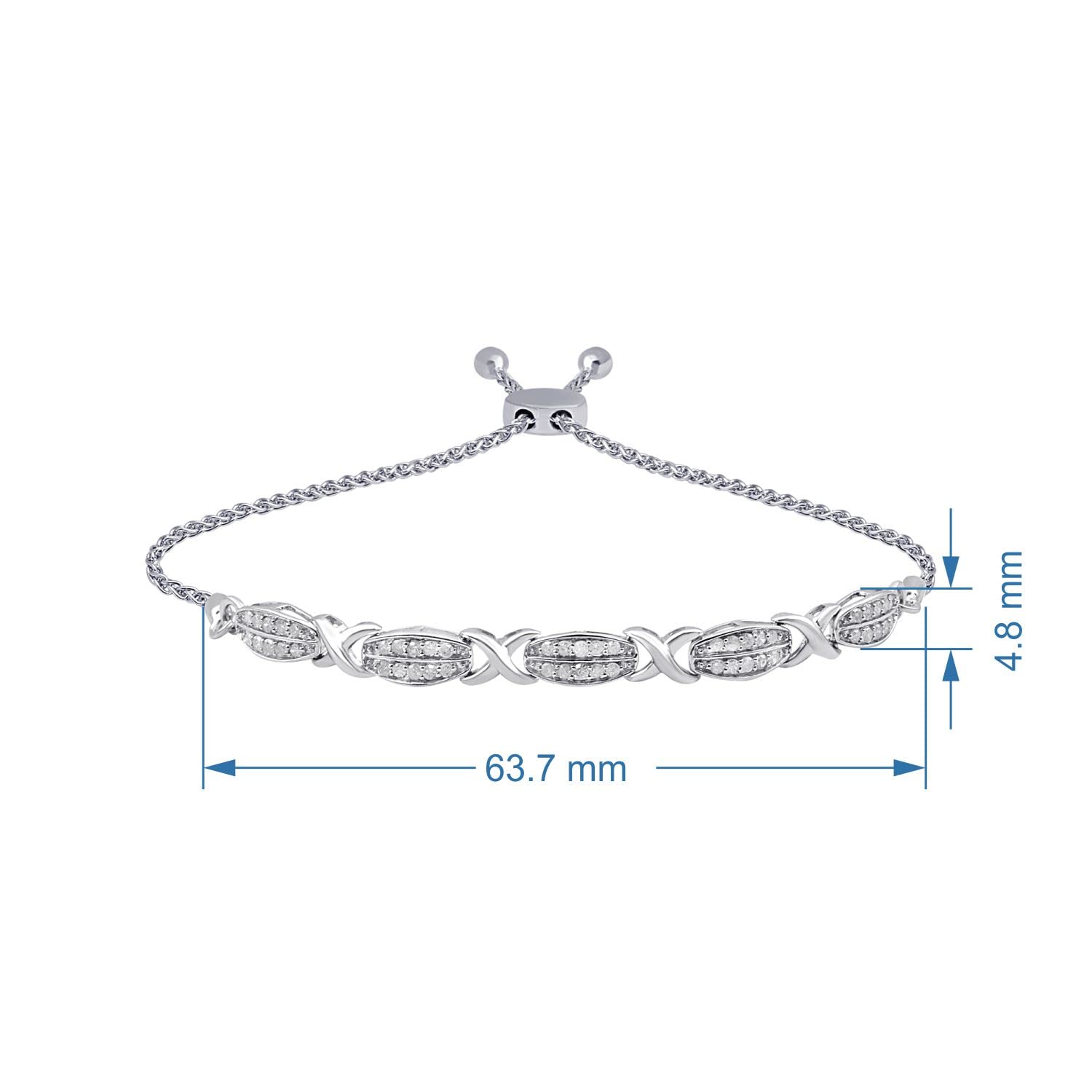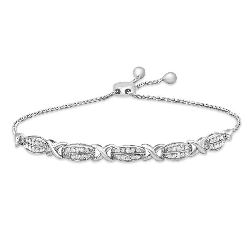 • Sterling Silver with 1/2 Cttw White Diamonds Bracelet, Adjustable Length