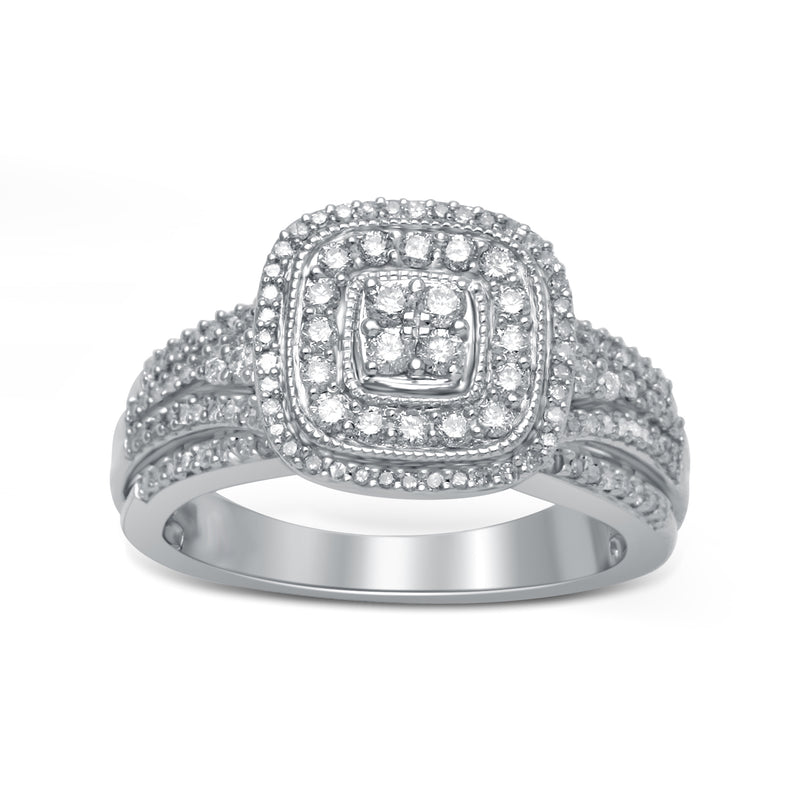 • Sterling Silver With 1/2 Cttw White Diamonds Engagement Ring
