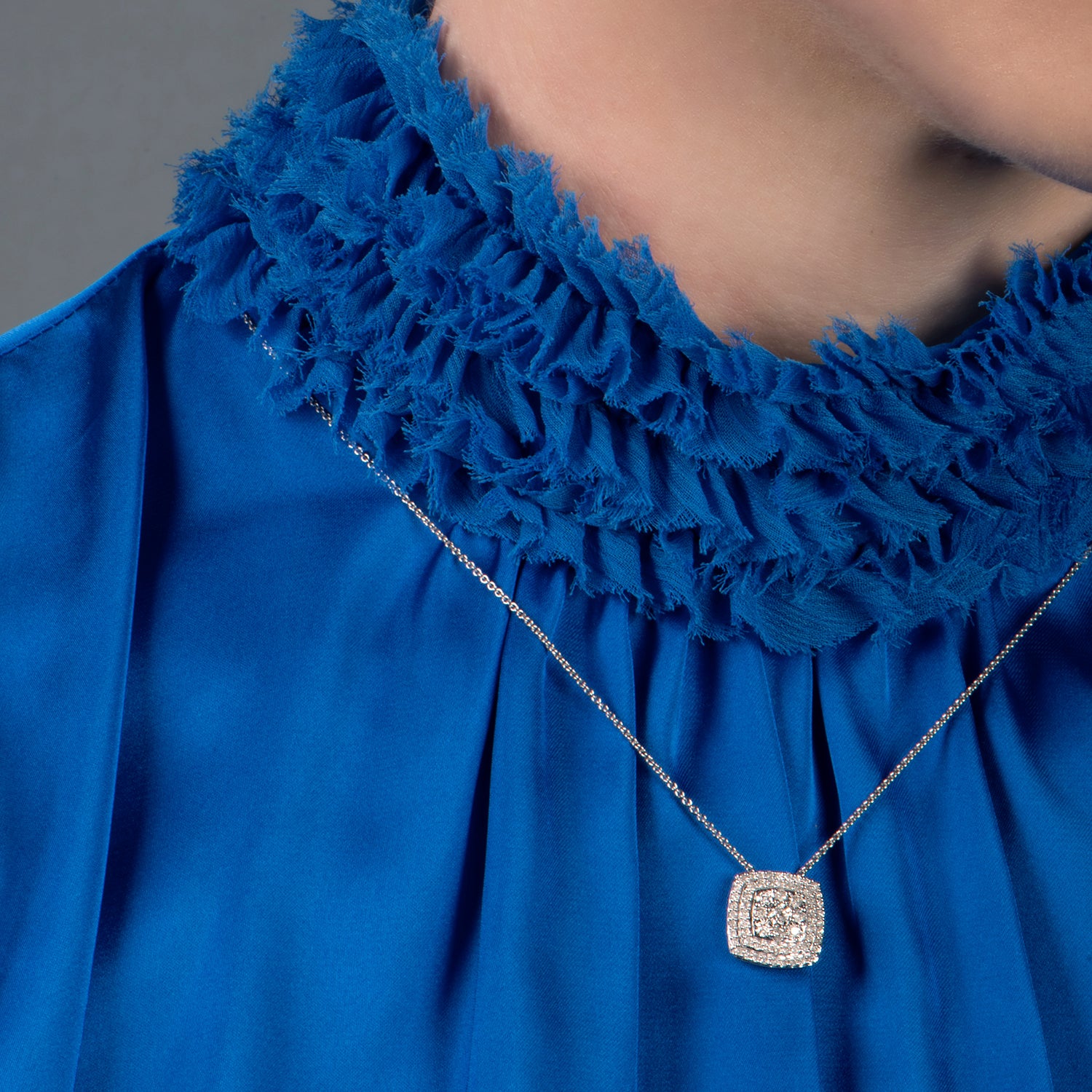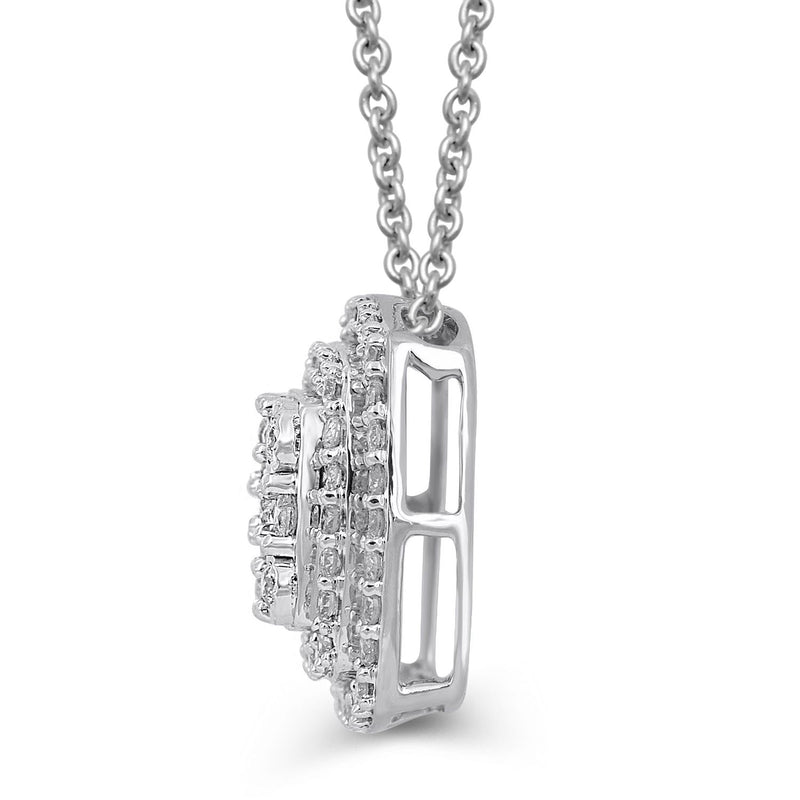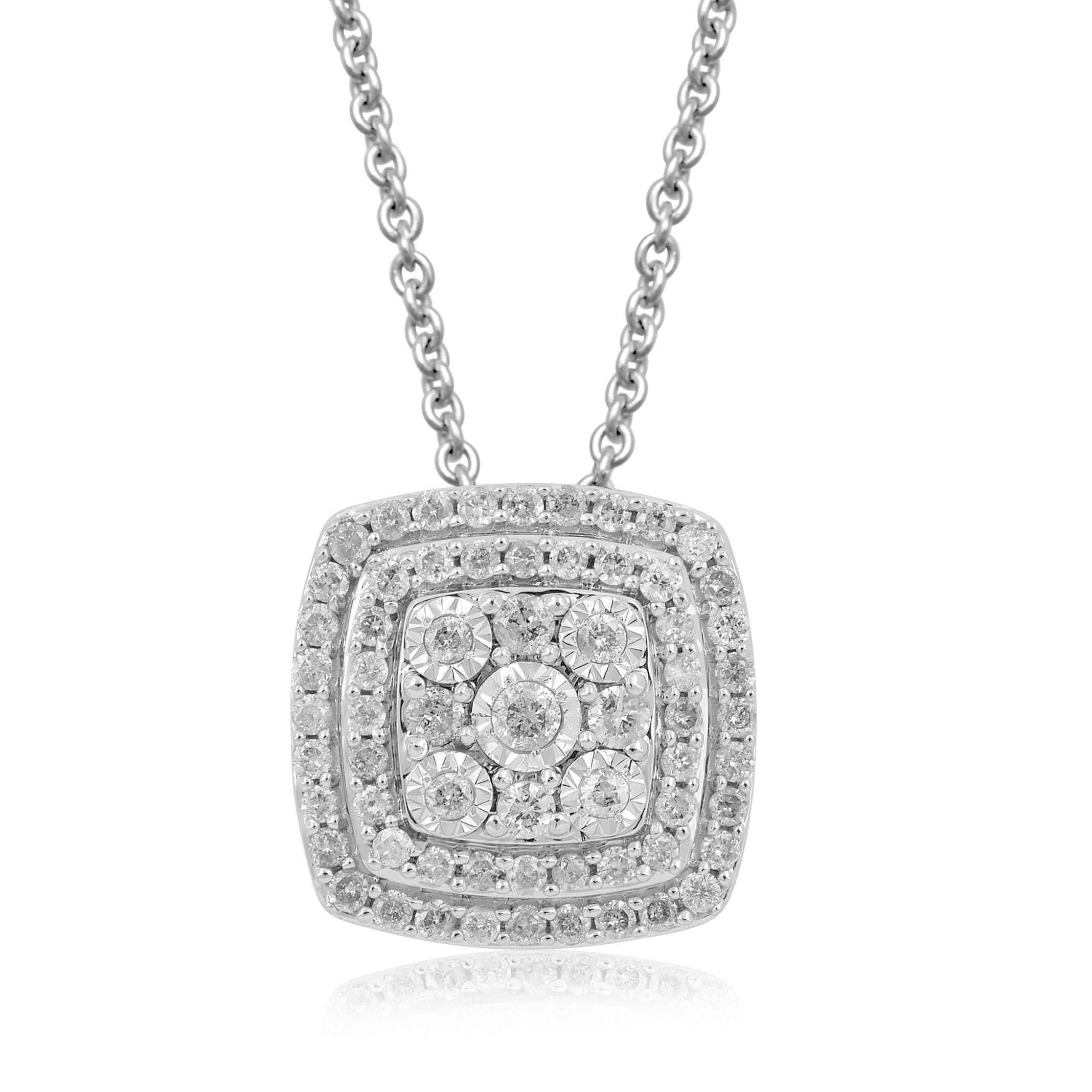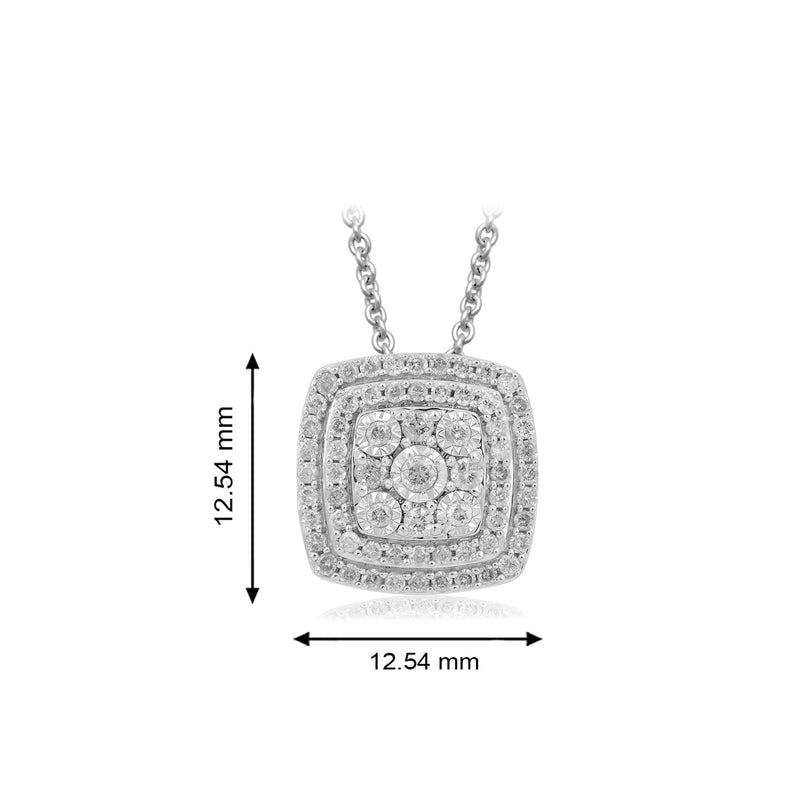 • Sterling Silver With 1/2 Cttw White Diamonds Square Shape Pendant Necklace