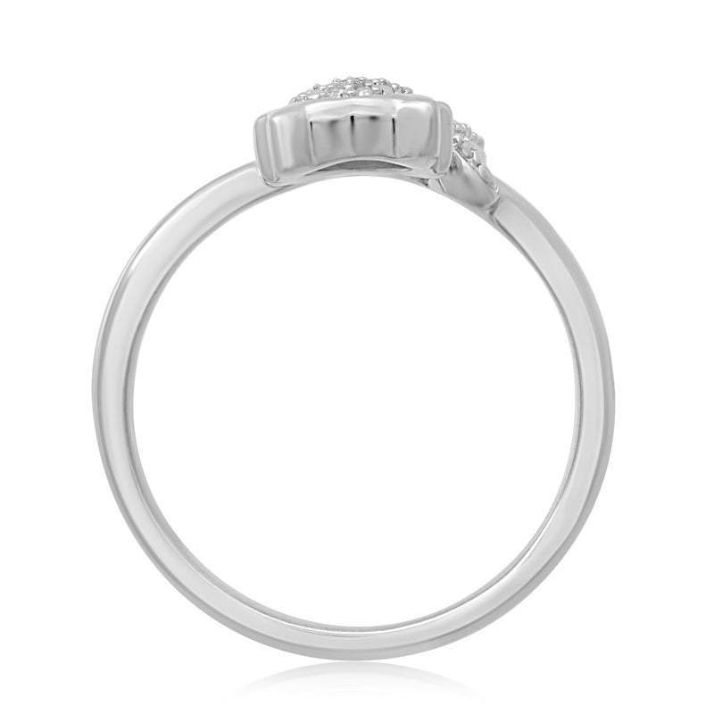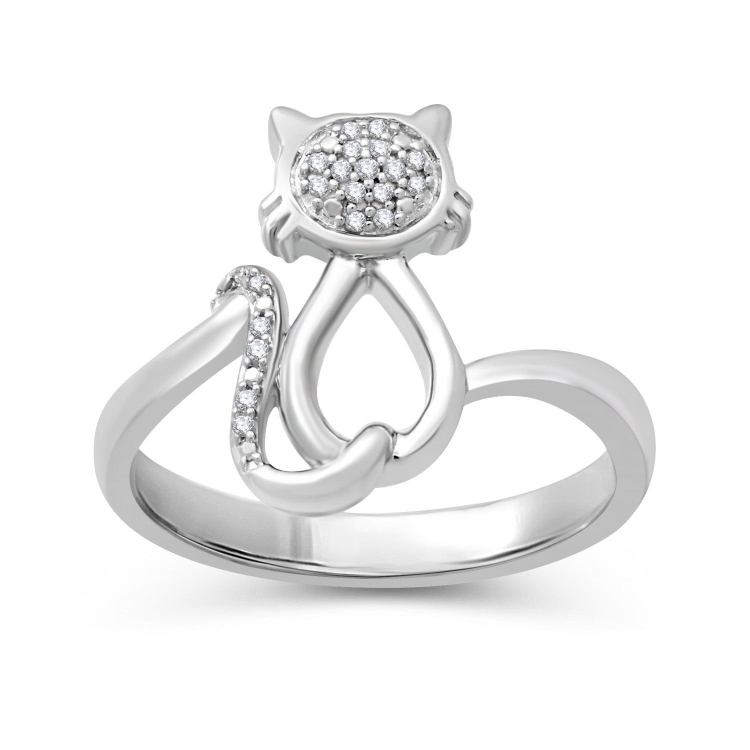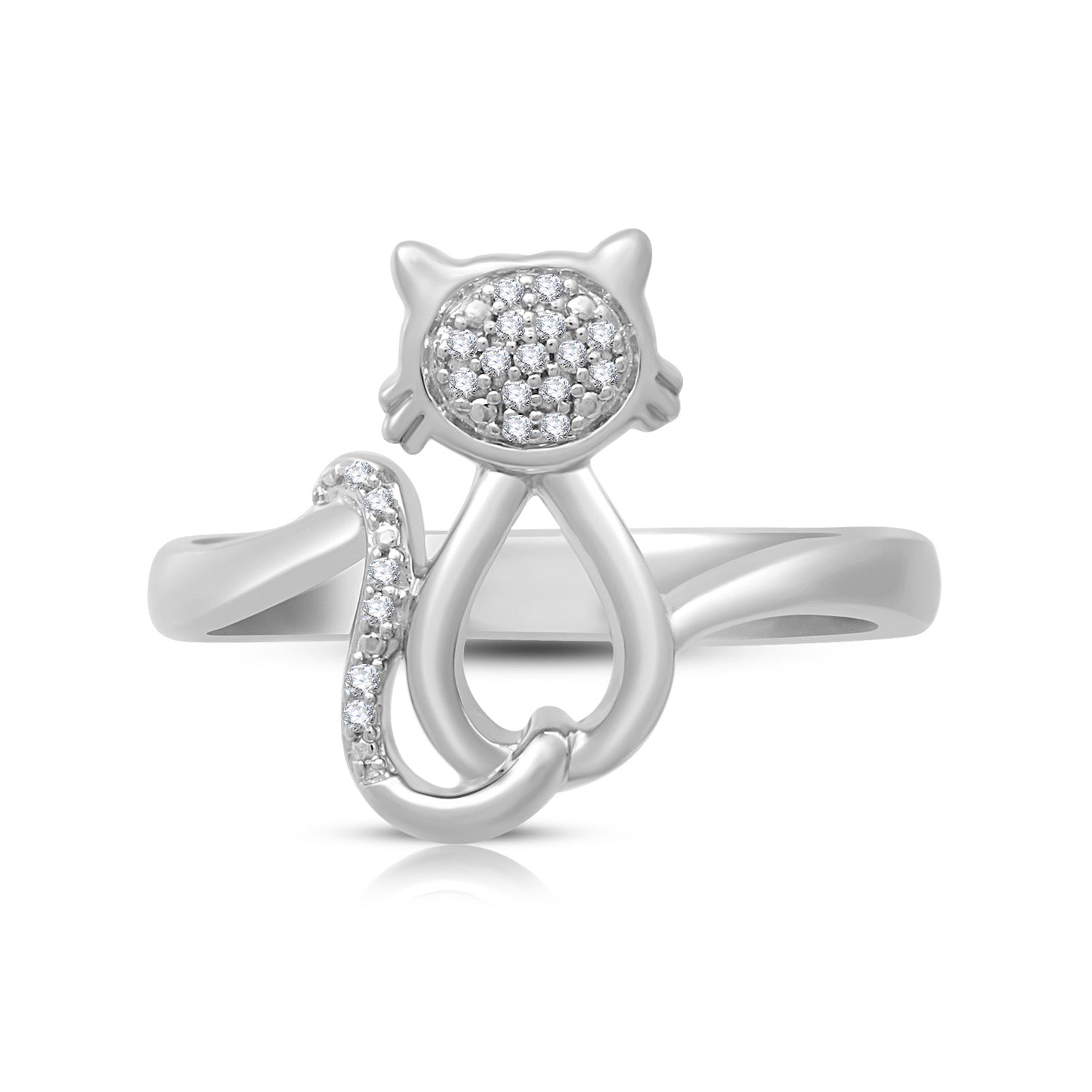 Jewelili Sterling Silver with 1/20 CTTW Natural White Round Diamonds Cat Ring