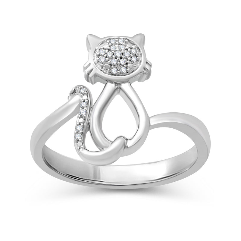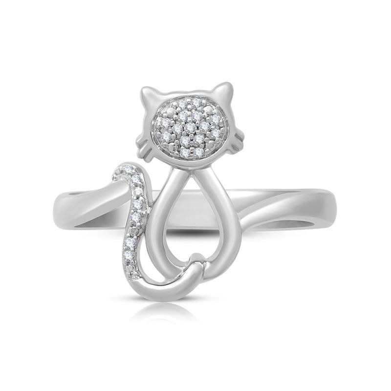 • Sterling Silver with 1/20 Cttw Natural White Round Diamond Cat Ring