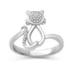 • Load image into Gallery viewer, Jewelili Sterling Silver with 1/20 CTTW Natural White Round Diamonds Cat Ring