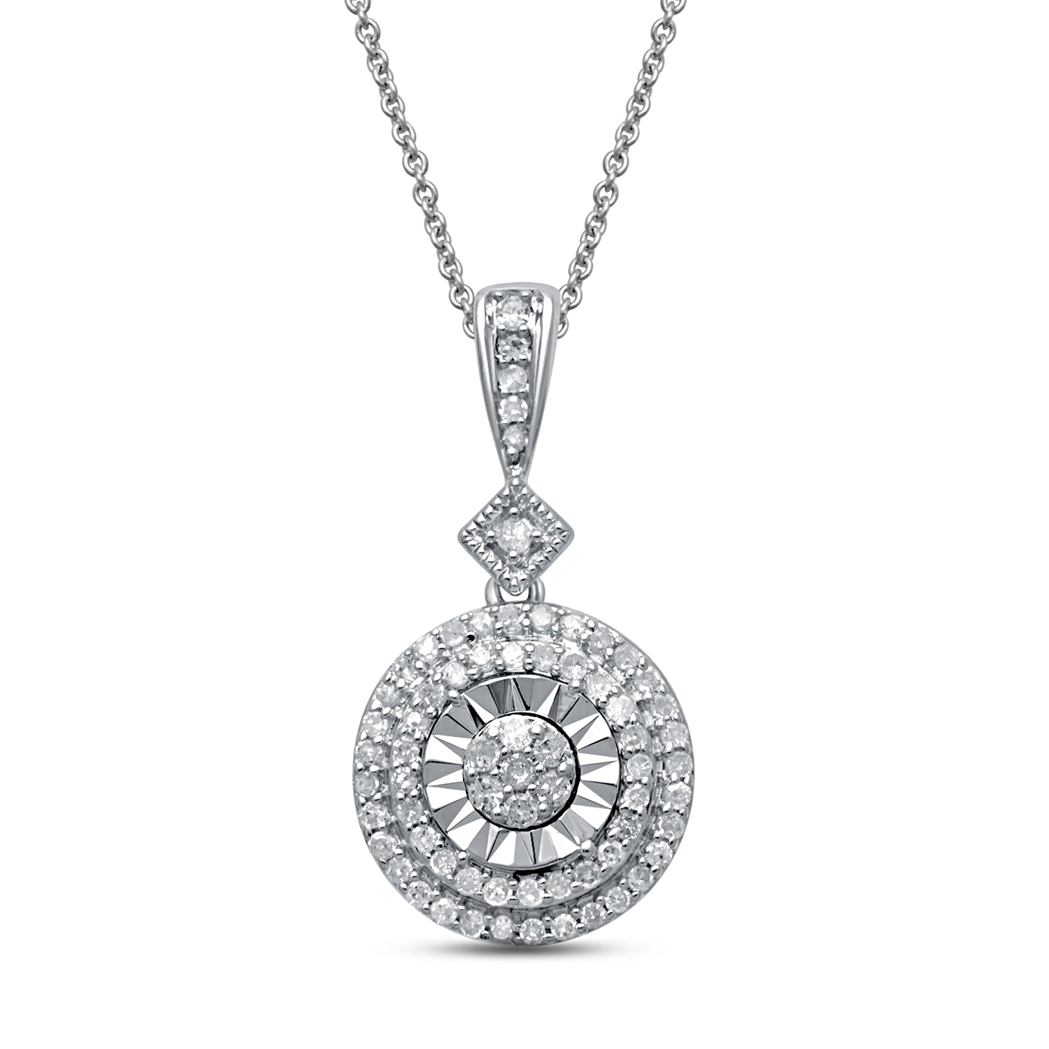 • Sterling Silver With 1/3 Cttw Natural White Diamond Round Shape Pendant Necklace