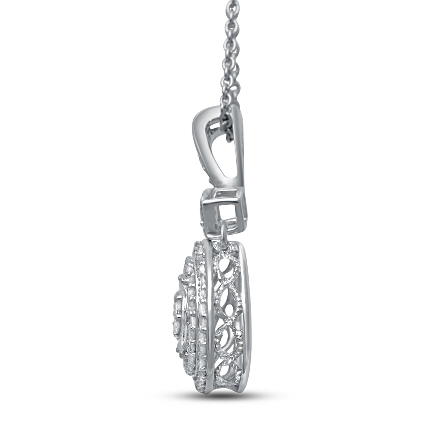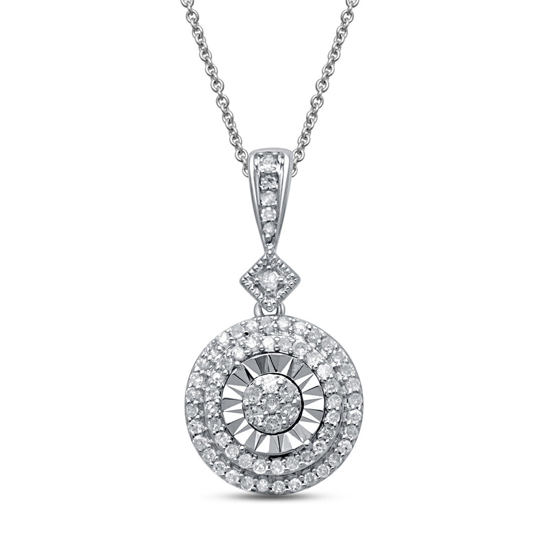 Jewelili Sterling Silver With 1/3 CTTW Natural White Diamonds Round Shape Pendant Necklace