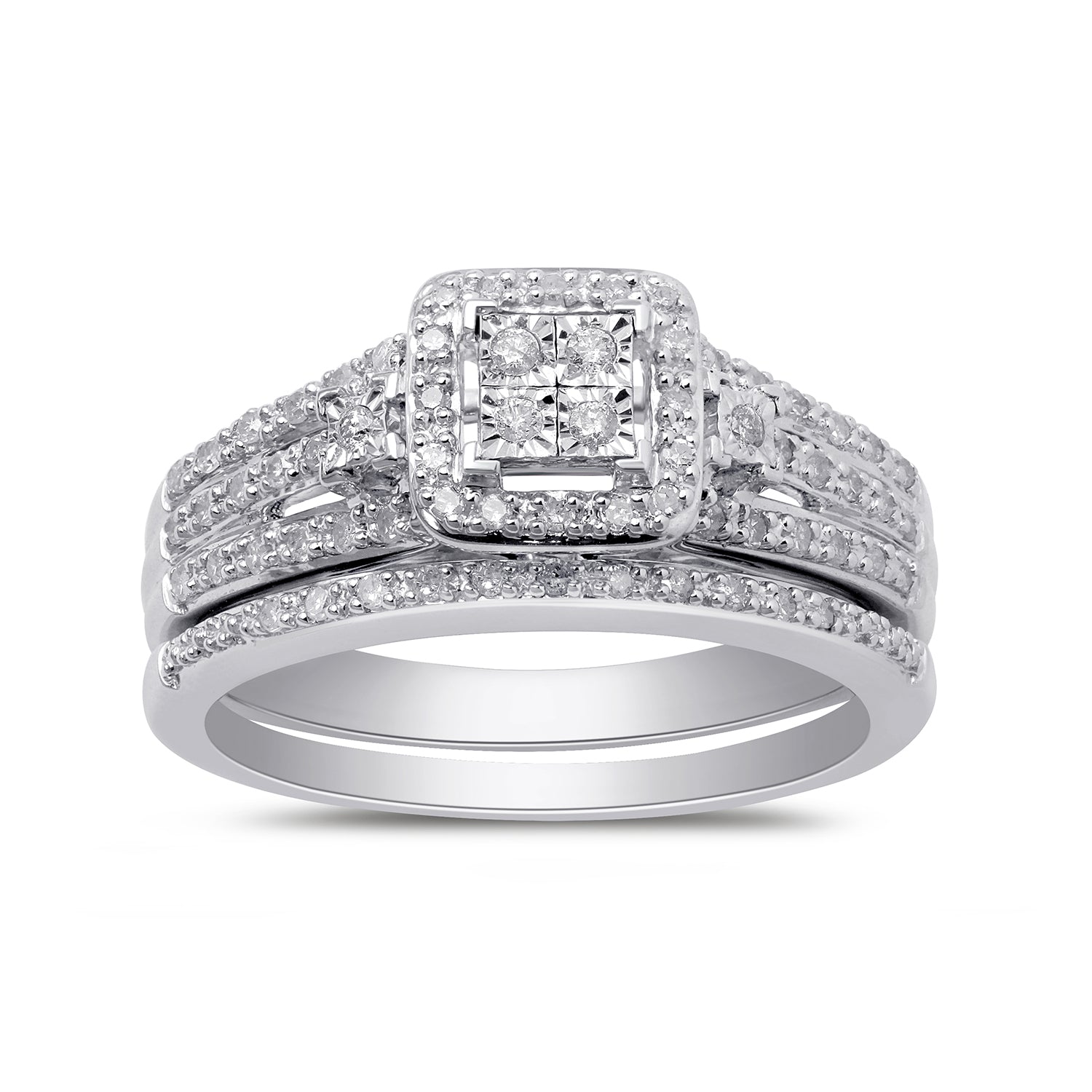 • Sterling Silver With 1/3 Cttw Natural White Diamonds Bridal Set