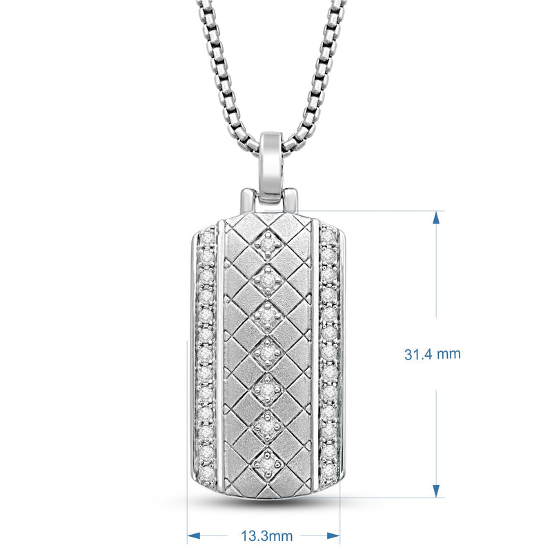 Jewelili Sterling Silver With 1/3 CTTW Natural White Round Diamonds Dog Tags Men's Pendant Necklace