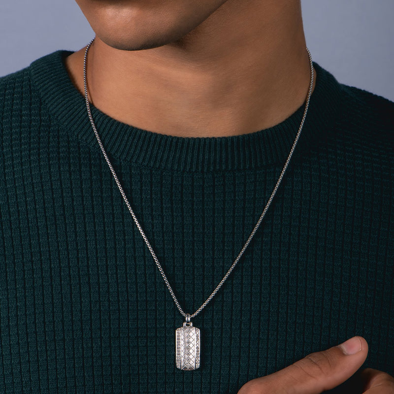 • Men's Diamond Accented Dog Tag Pendant In Sterling Silver