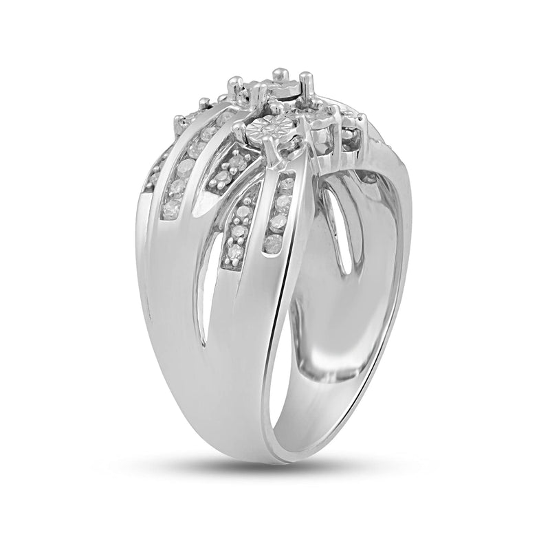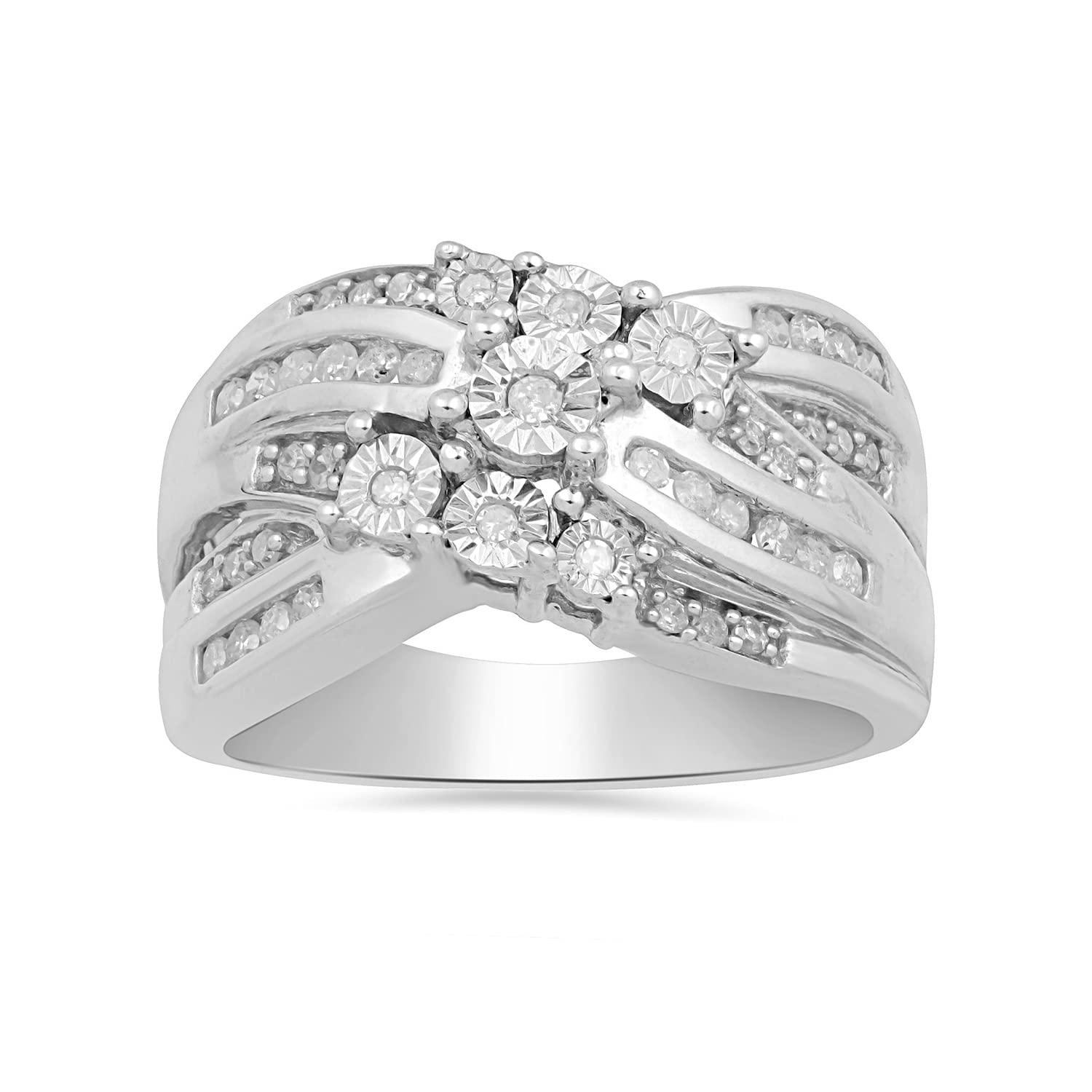 Jewelili Sterling Silver With 1/3 CTTW Natural White Round Diamonds Engagement Ring
