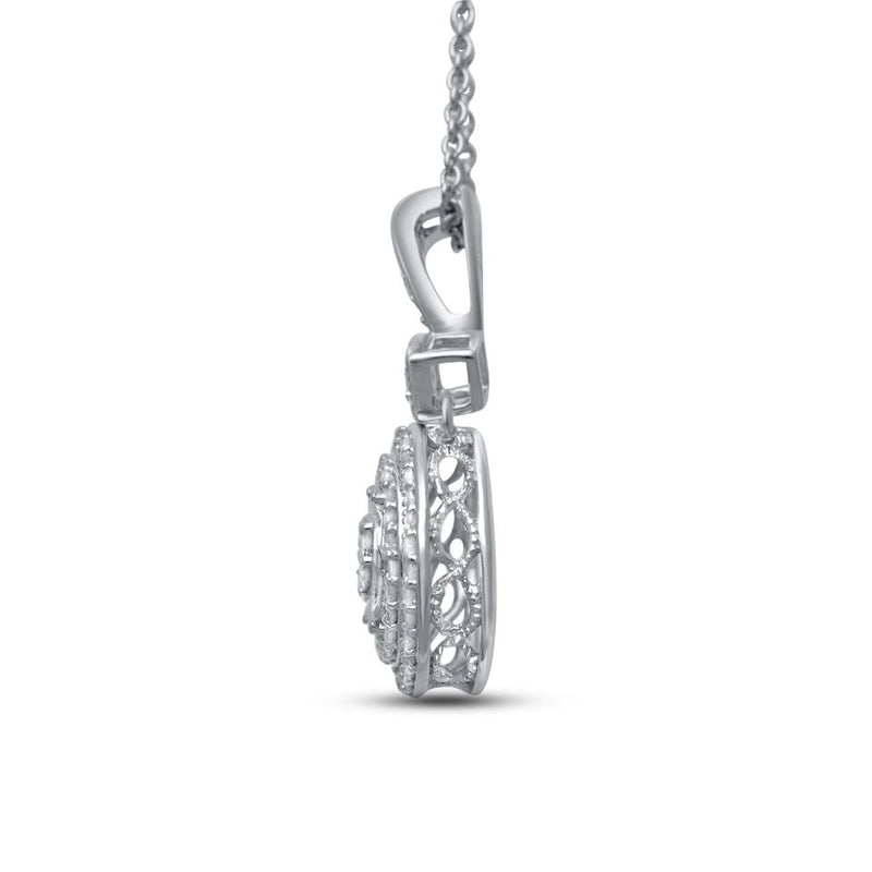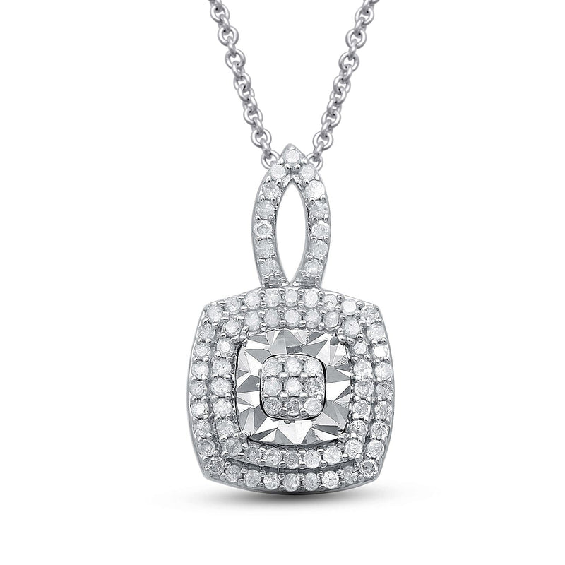 •  Sterling Silver 1/3 Cttw Natural White Round Diamond Pendant Necklace, 18" Rolo Chain