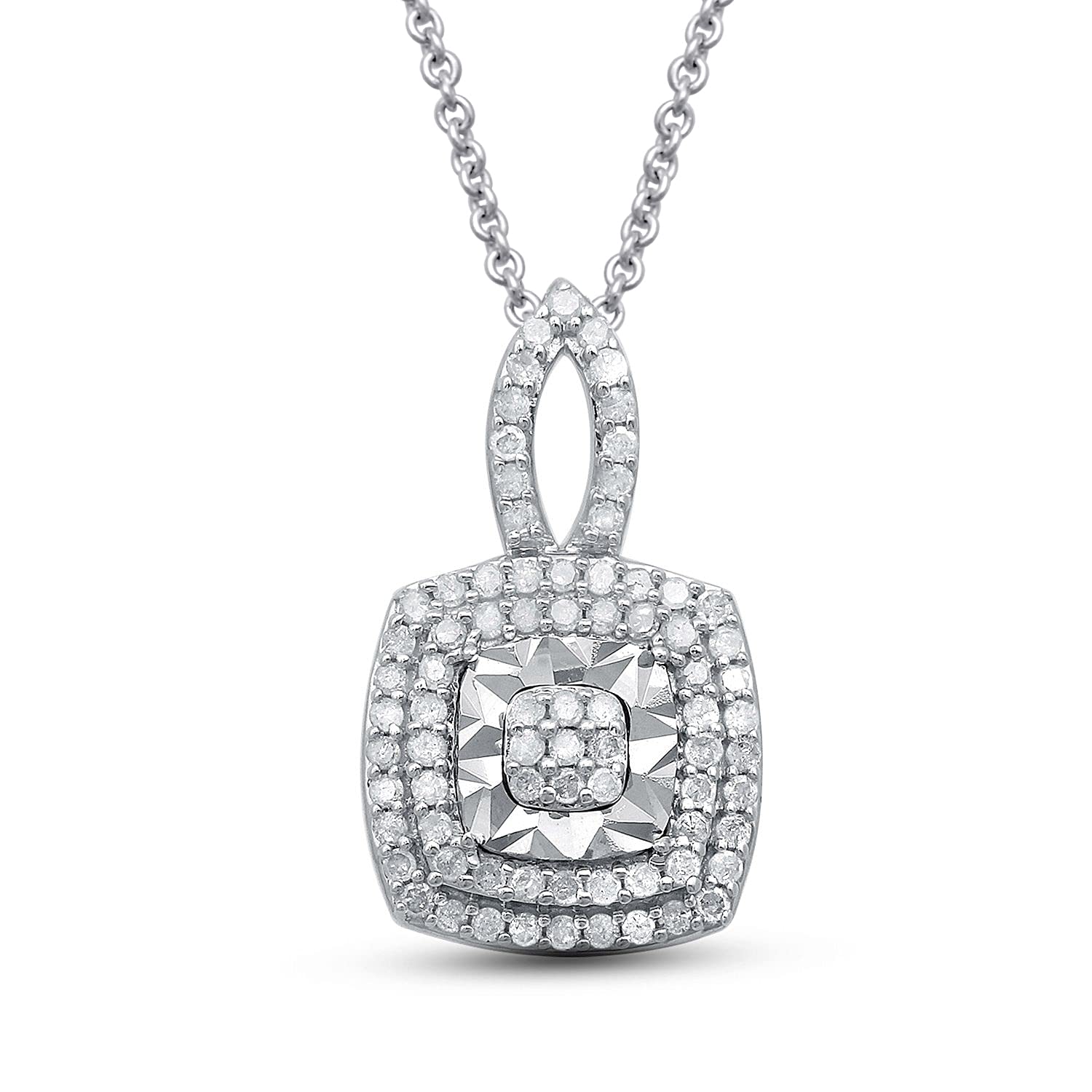 Jewelili Sterling Silver With 1/3 CTTW Natural White Round Diamonds Round Shape Sqaure shape and Heart Shape Pendant Necklace