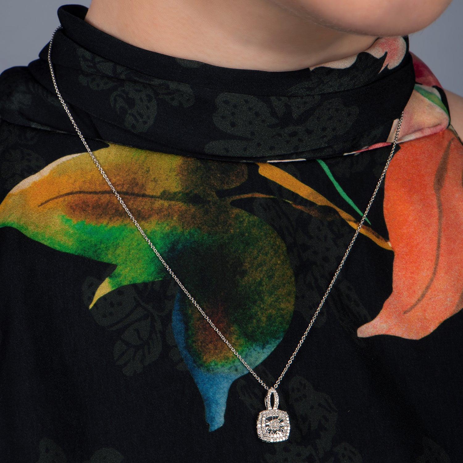 • Load image into Gallery viewer, Jewelili Sterling Silver With 1/3 CTTW Natural White Round Diamonds Round Shape Sqaure shape and Heart Shape Pendant Necklace