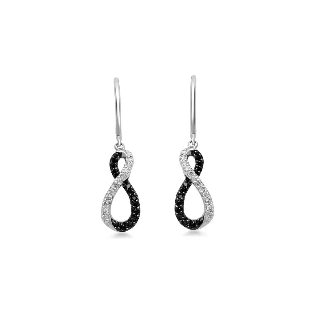Details: Sterling Silver With 1/3 Cttw Treated Black and White Diamonds Infinity Dangle Earrings.