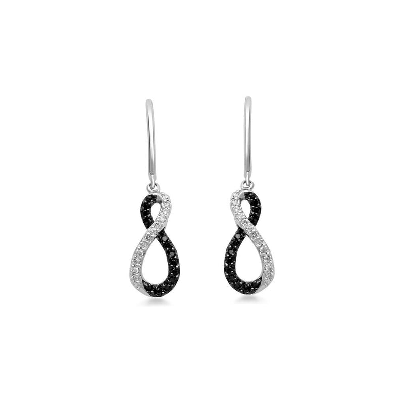 • Sterling Silver With 1/3 Cttw Treated Black and White Diamonds Infinity Dangle Earrings