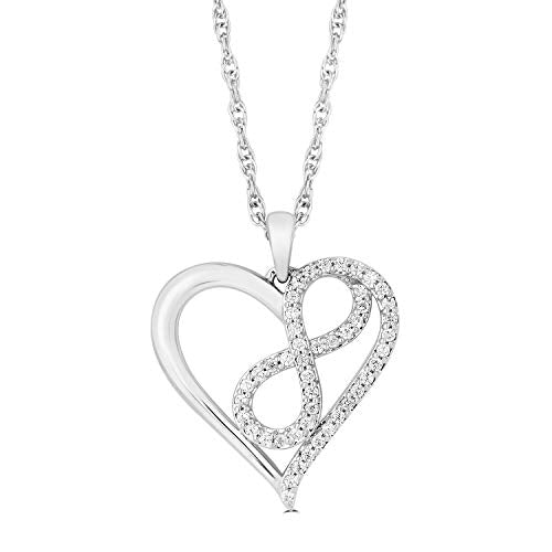 Jewelili Sterling Silver With 1/4 CTTW Diamonds Heart Pendant Necklace