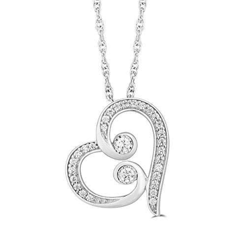 Jewelili Sterling Silver With 1/4 CTTW Diamonds Heart Shape Pendant Necklace