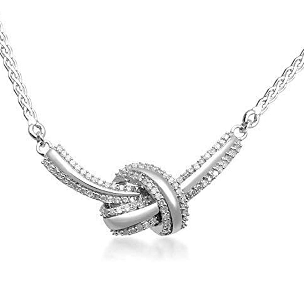 Jewelili Sterling Silver With 1/4 CTTW Diamonds Knot Pendant Necklace