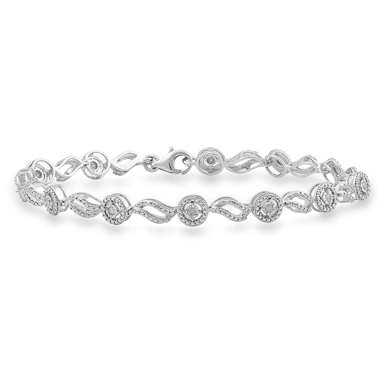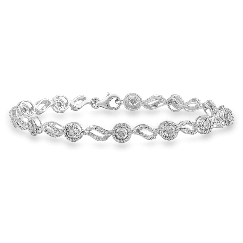 Jewelili Sterling Silver with 1/4 CTTW Diamonds Link Bracelet