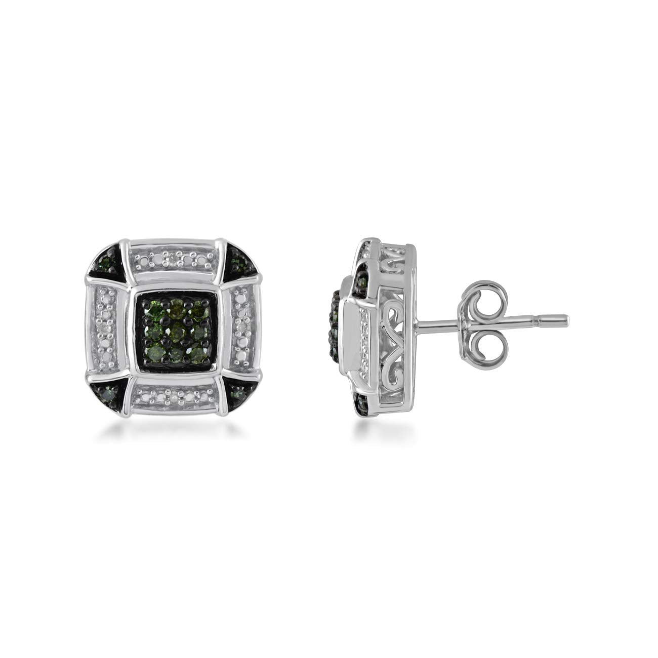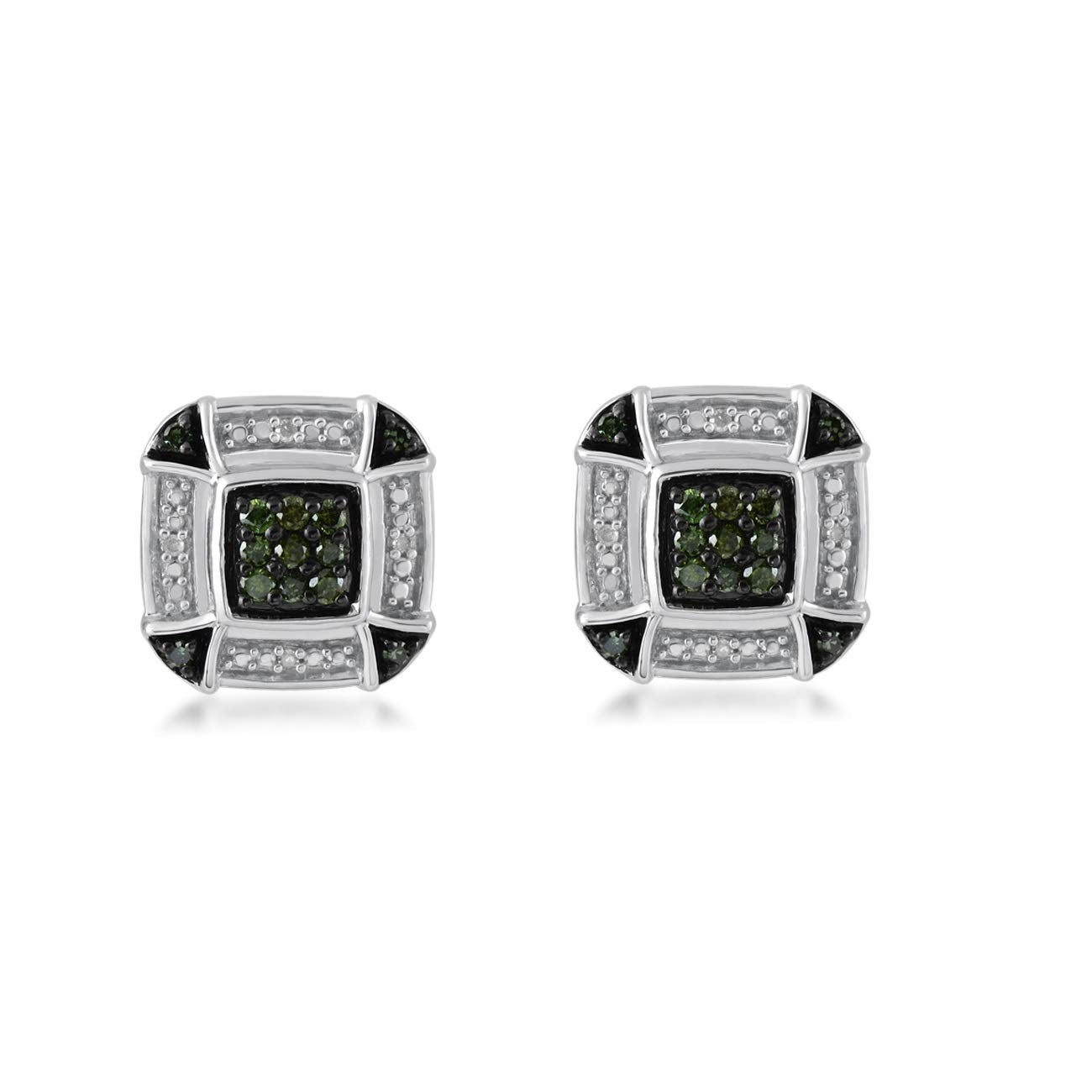 Details: Sterling Silver With 1/4 Cttw Green and White Natural Diamond Stud Earrings