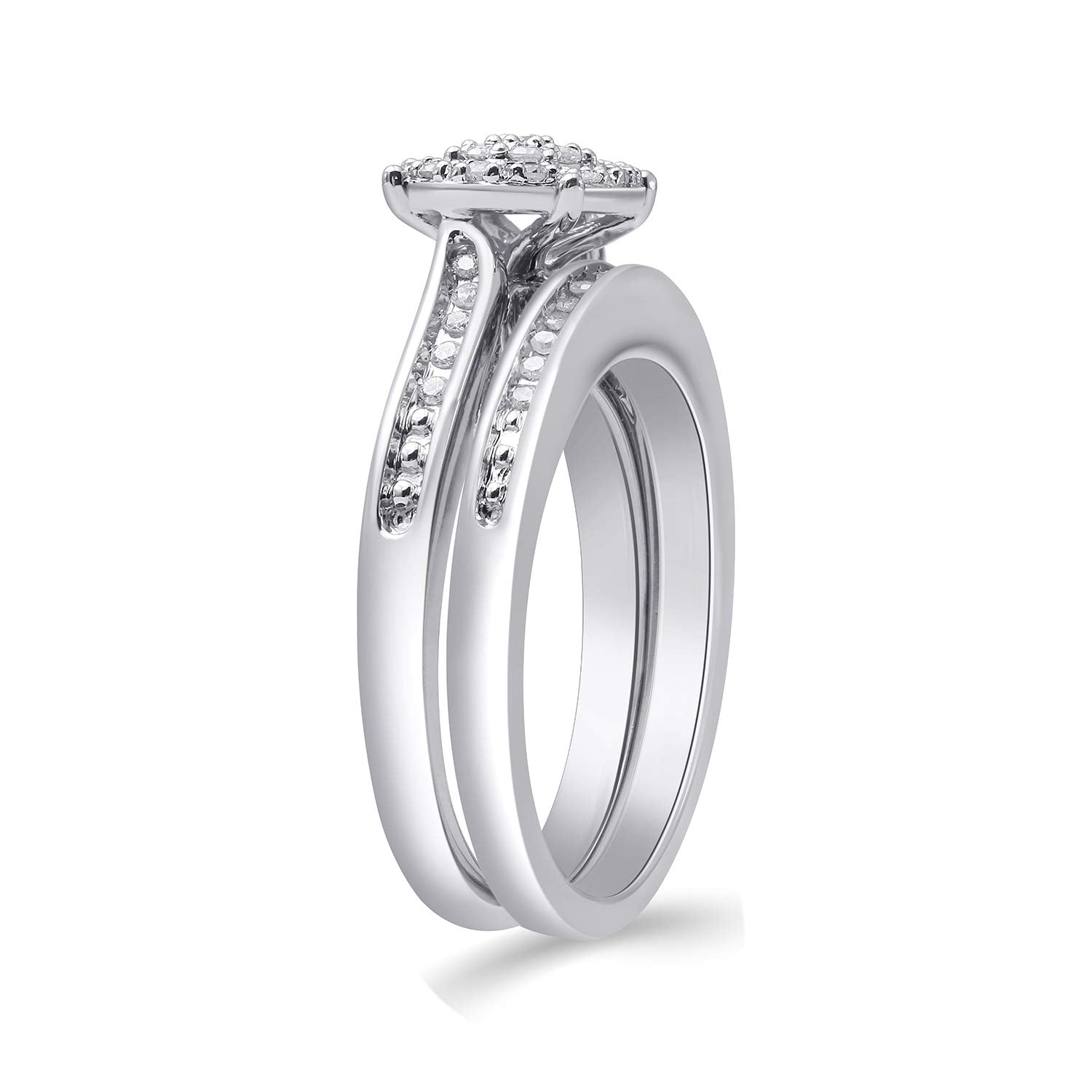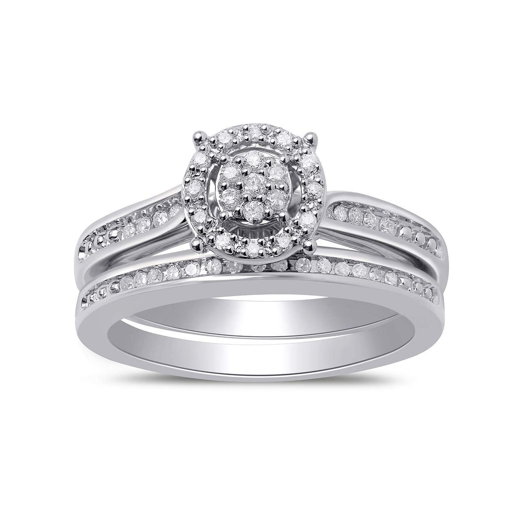 Jewelili Sterling Silver with 1/4 CTTW Natural White Diamonds Bridal Set