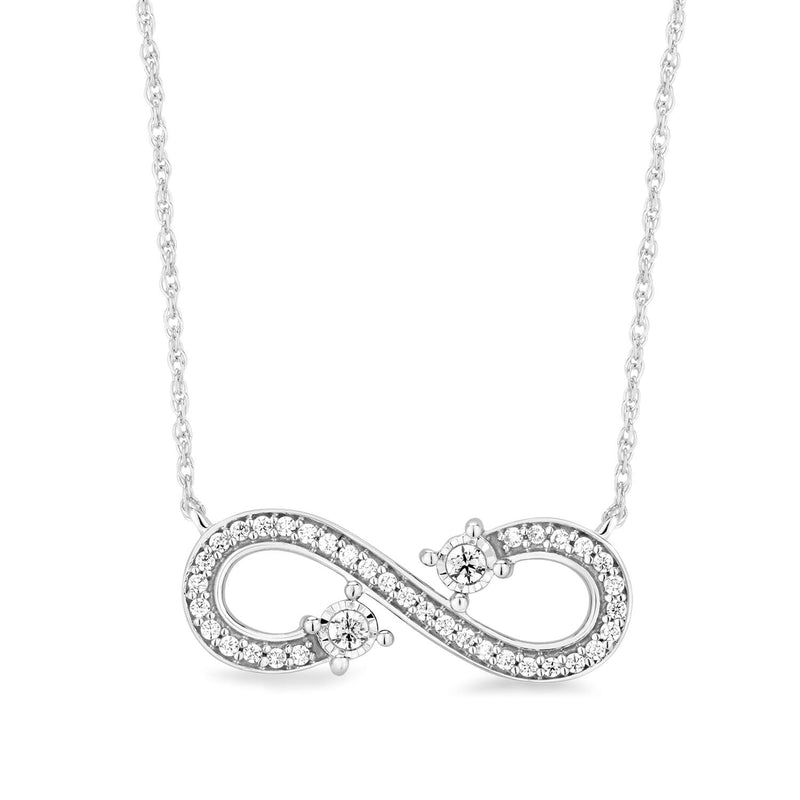 • Sterling Silver With 1/4 Cttw Natural White Diamond Infinity Pendant Necklace