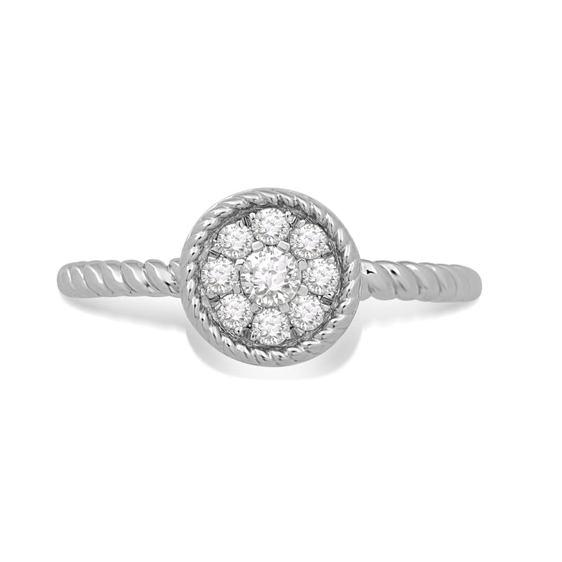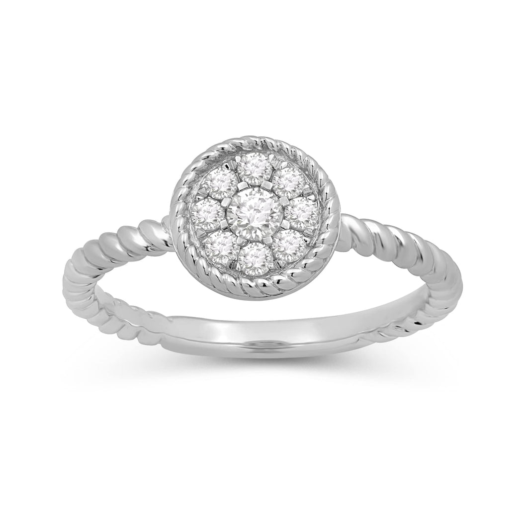 • Sterling Silver With 1/4 Cttw Natural White Diamond Rope Cluster Ring.