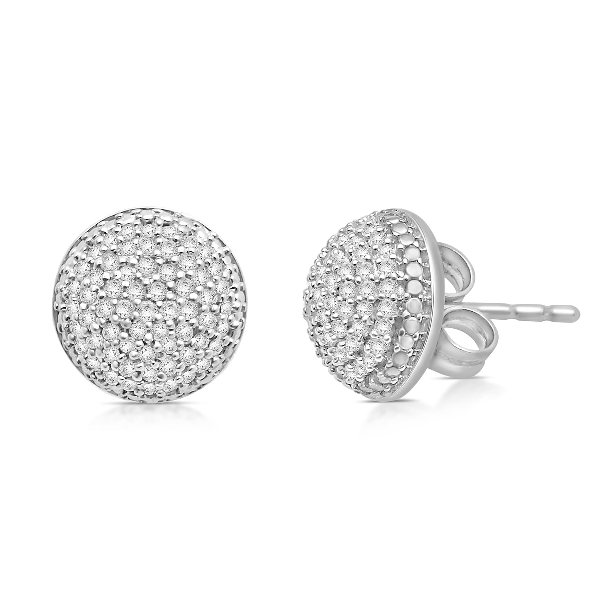 Jewelili Sterling Silver With 1/4 CTTW Natural White Diamond Stud Earrings