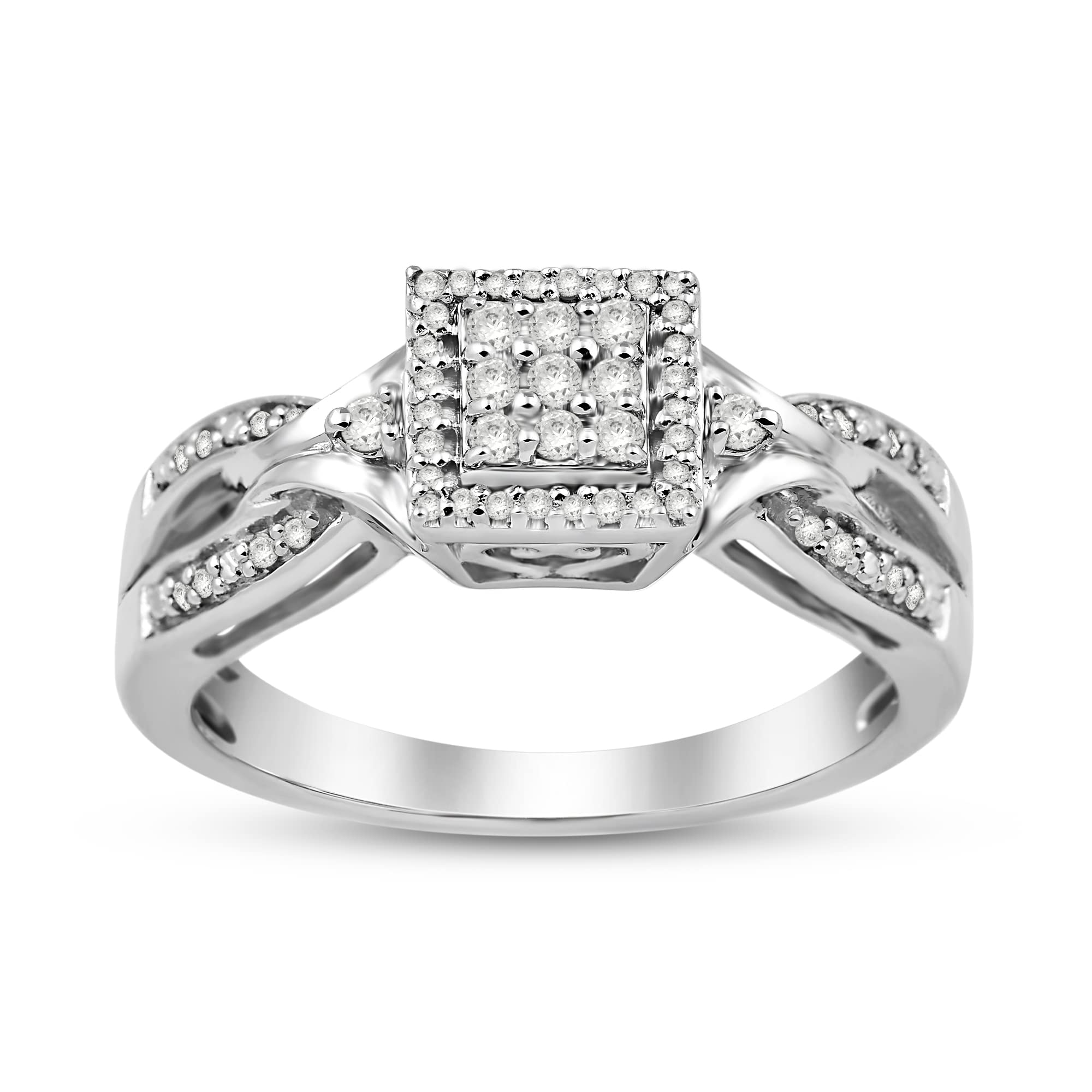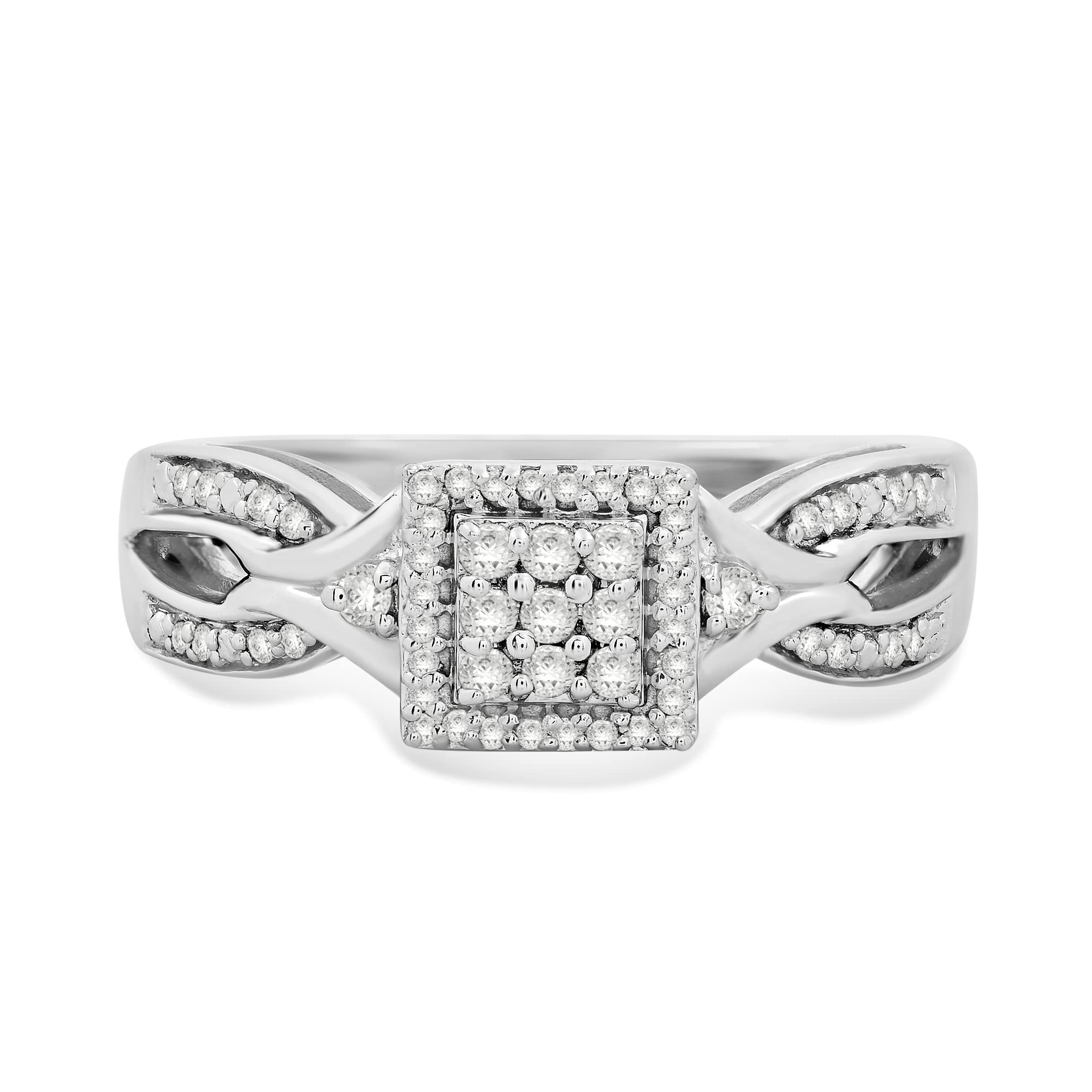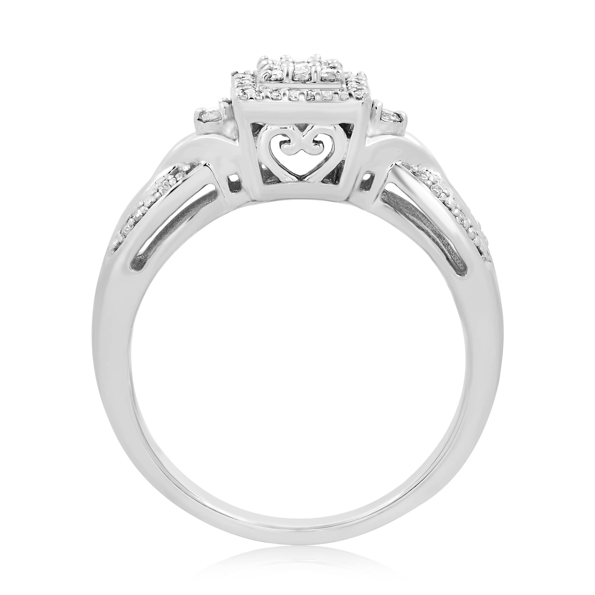 Jewelili Sterling Silver With 1/4 CTTW Natural White Diamonds Bridal Engagement Ring