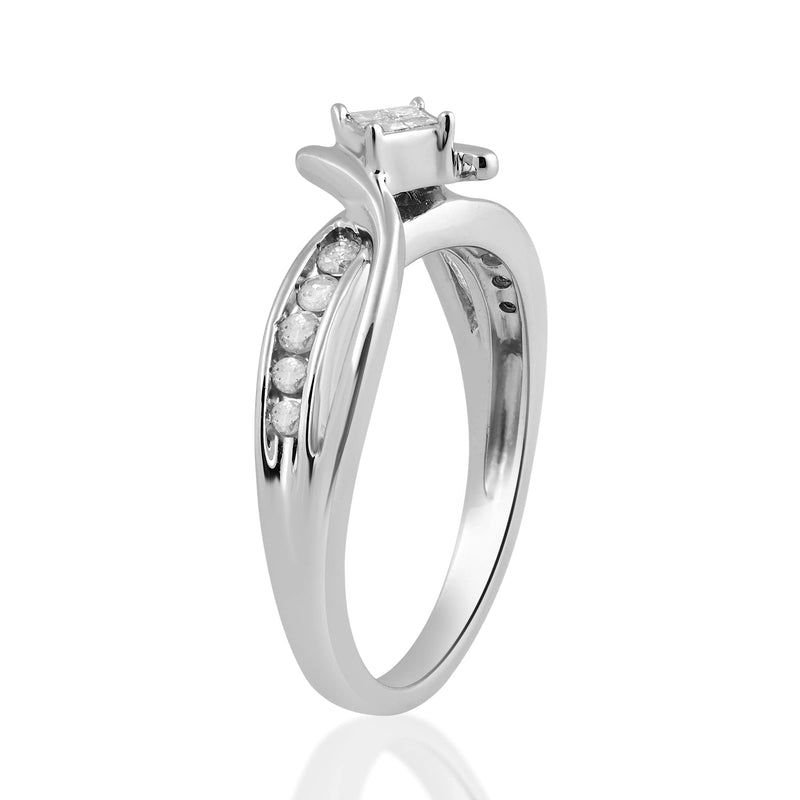 Jewelili Sterling Silver With 1/4 CTTW Natural White Diamonds Engagement Ring