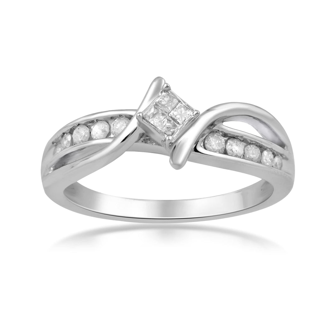 • Sterling Silver With 1/4 Cttw Natural White Diamonds Engagement Ring