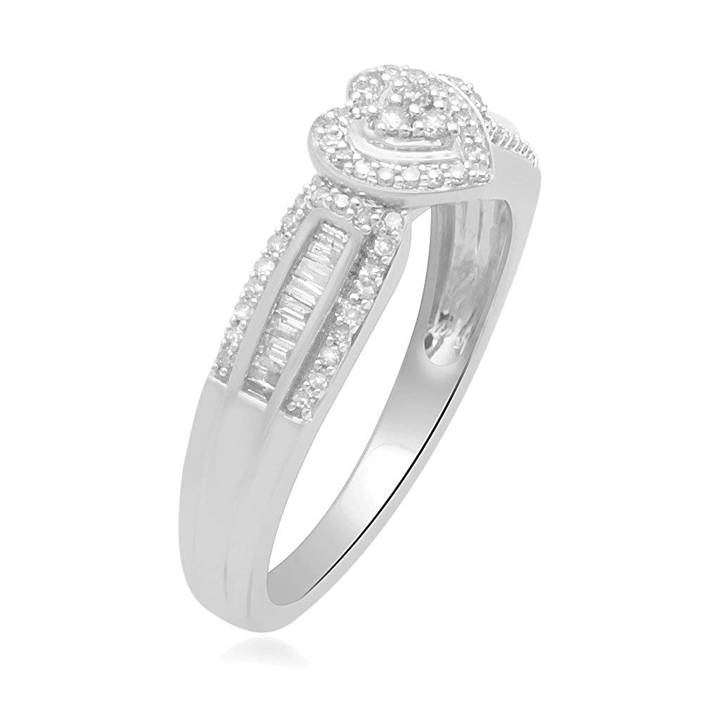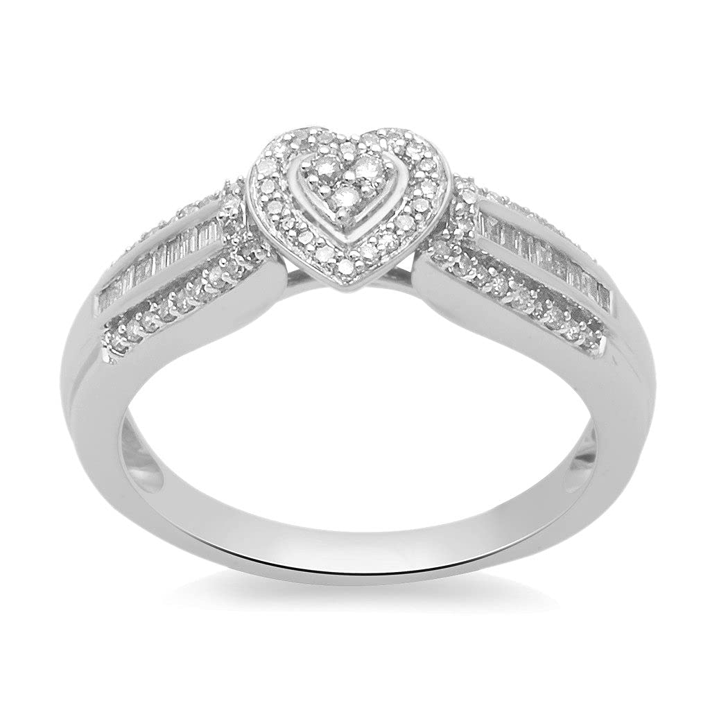 Jewelili Sterling Silver With 1/4 CTTW Round Cut White Diamonds Heart Ring