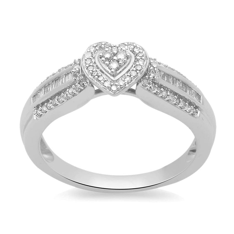 • Sterling Silver With 1/4 Cttw Round Cut White Diamonds Heart Ring