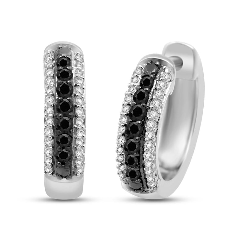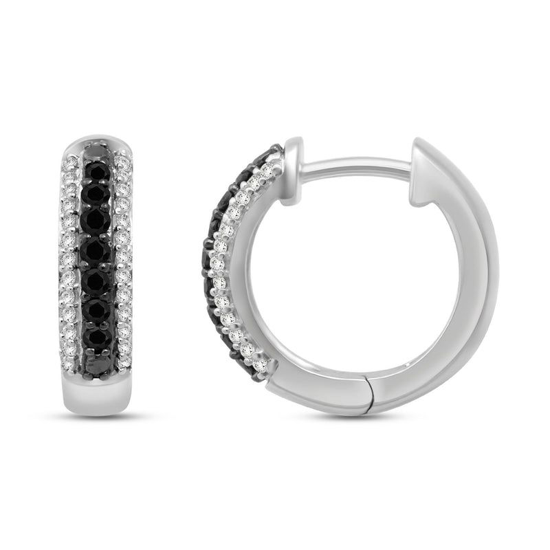 • Sterling Silver With 1/4 CTTW Treated Black and Natural White Diamonds Hoop Earrings