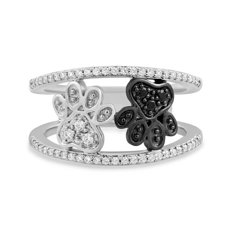 • Load image into Gallery viewer, Jewelili Paw Ring with Black and White Diamonds in Sterling Silver 1/4 CTTW View 1