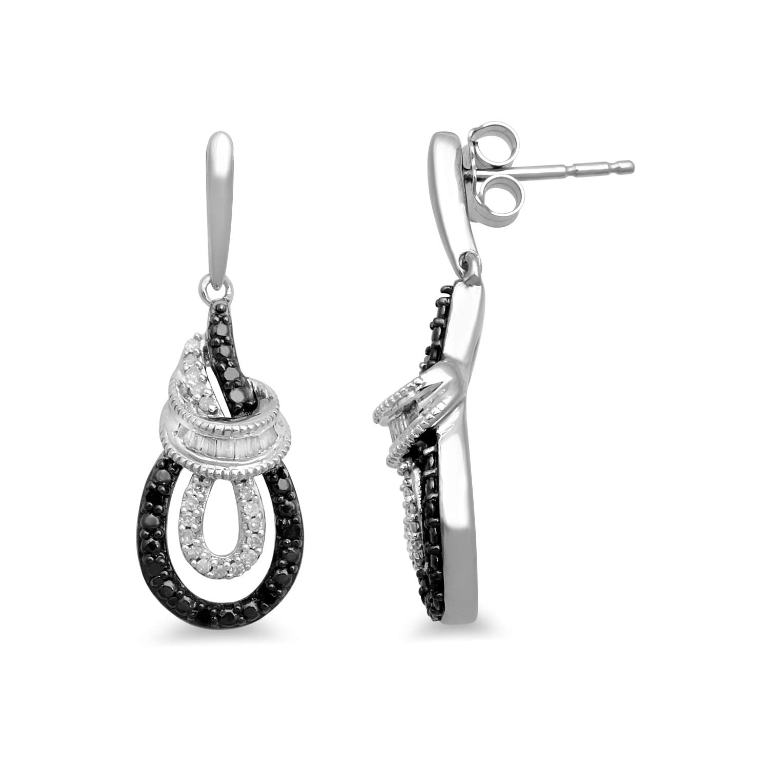 Jewelili Sterling Silver With 1/4 CTTW Treated Black and White Natural Diamond Teardrop Drop Earrings