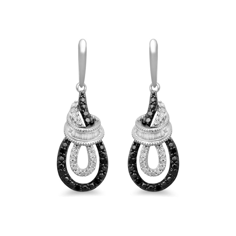 • Sterling Silver With 1/4 Cttw Treated Black and White Natural Diamond Teardrop Drop Earrings