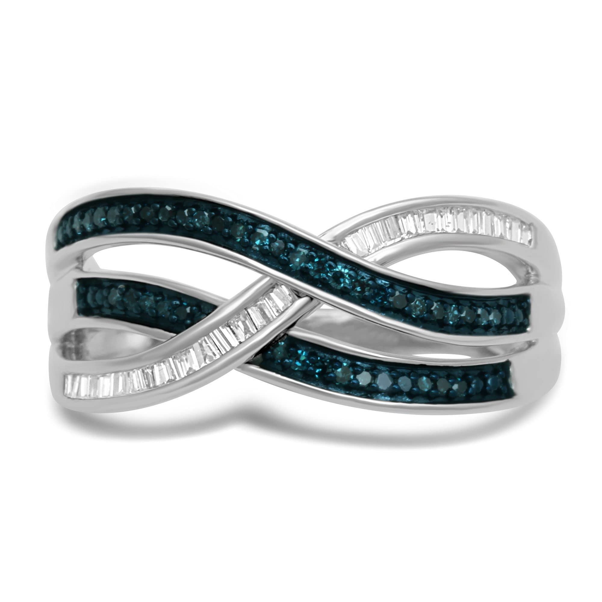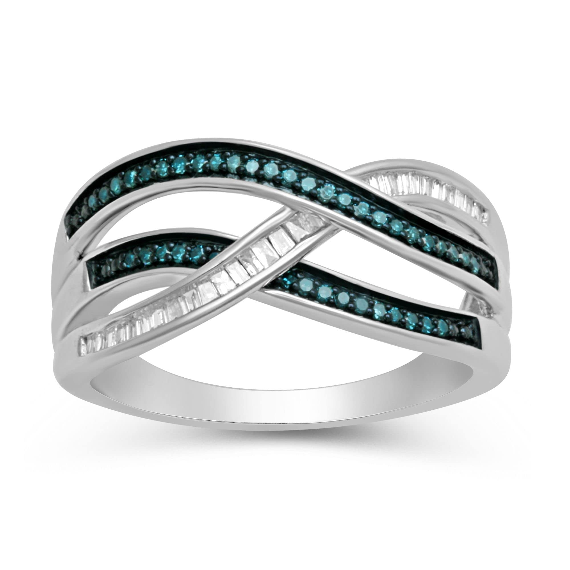 Jewelili Sterling Silver With 1/4 CTTW Treated Blue Diamonds and White Diamonds Wedding Band