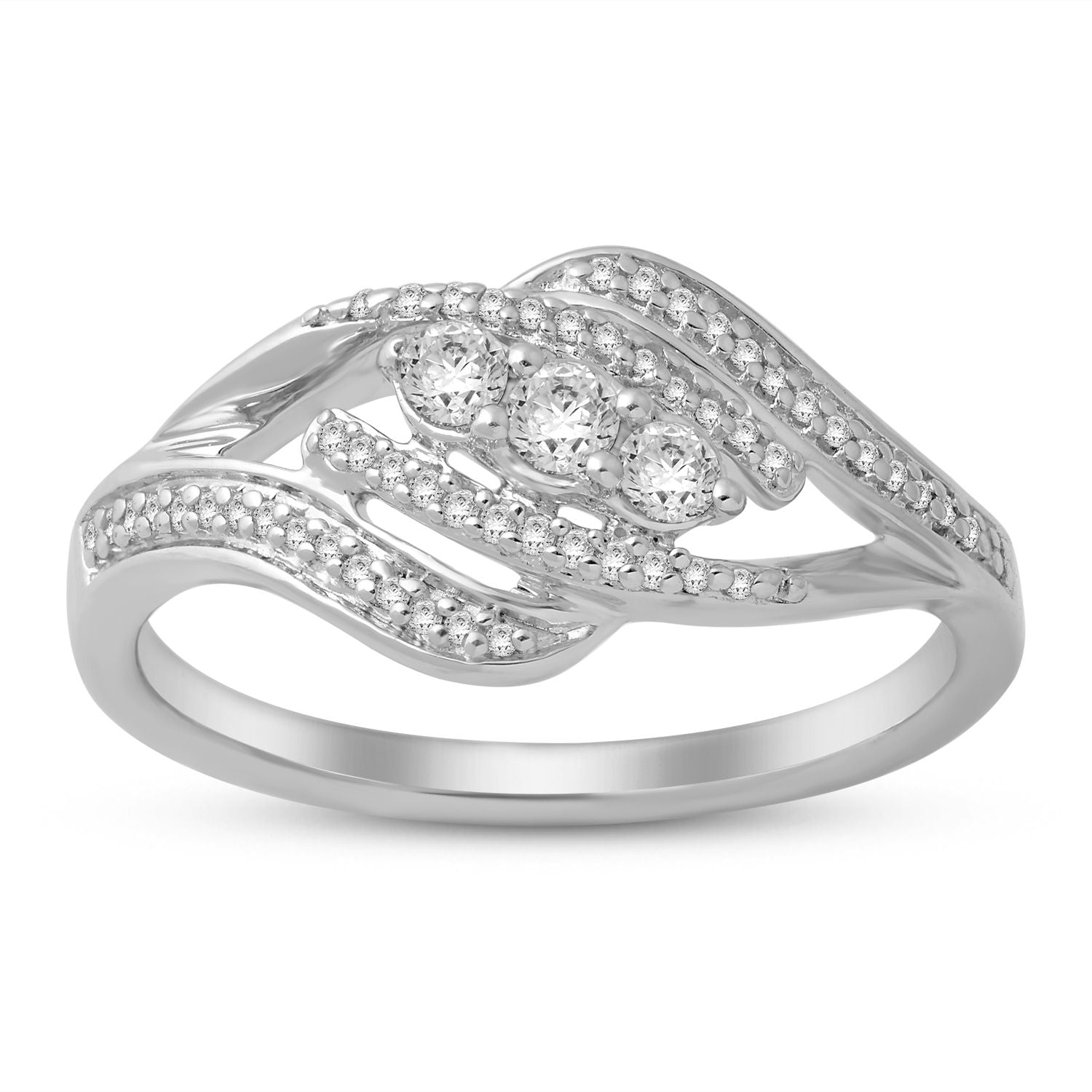 • Sterling Silver With 1/4 Cttw White Round Diamond Ring