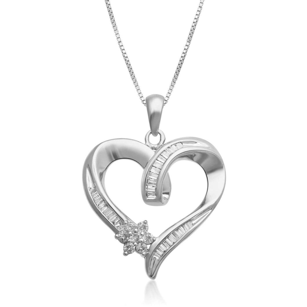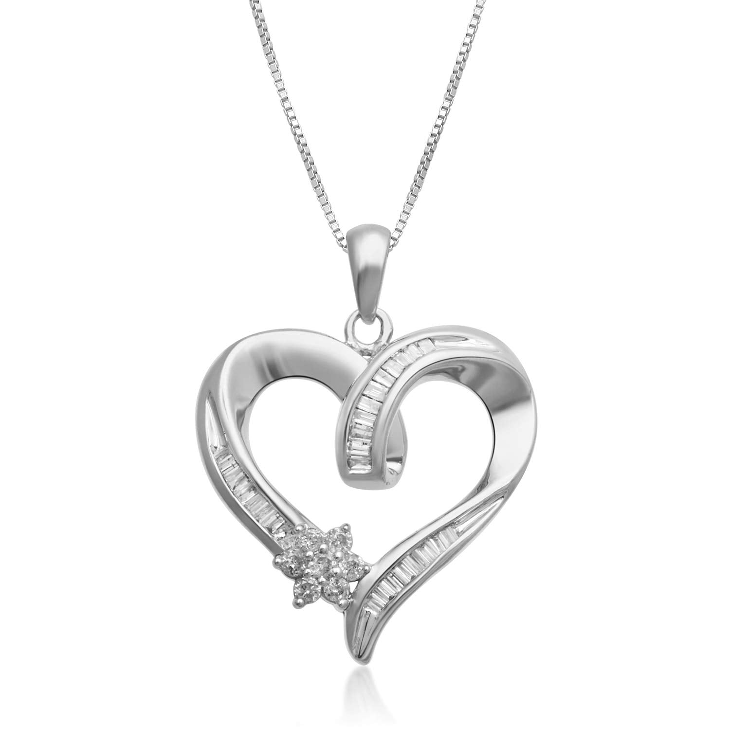 Jewelili Sterling Silver With 1/4 CTTW Natural White Diamonds Heart Pendant Necklace