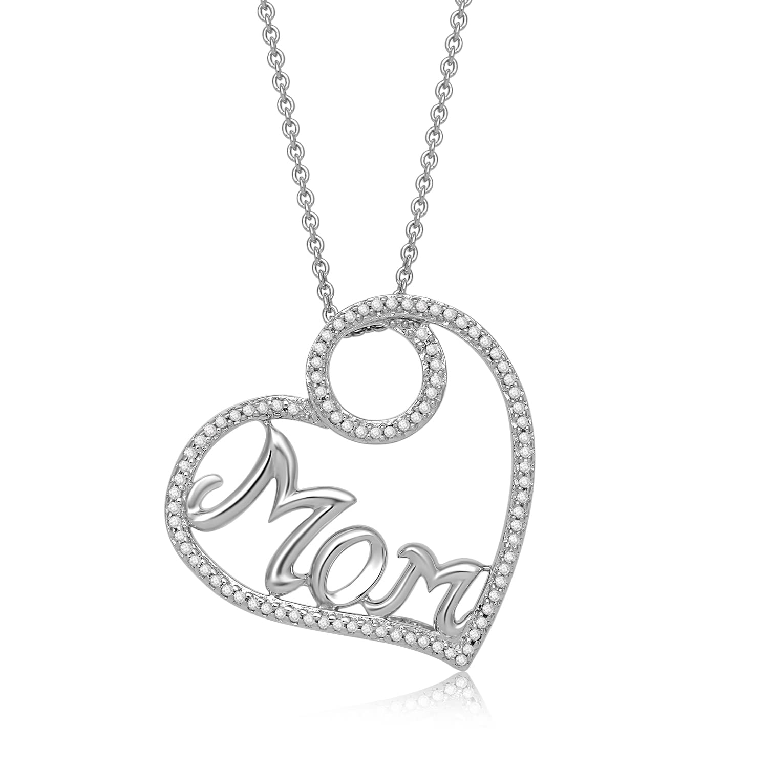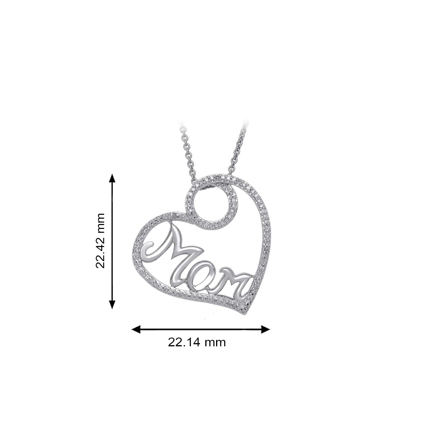 Jewelili Sterling Silver with 1/5 CTTW Diamonds Heart Shape Mom Pendant Necklace