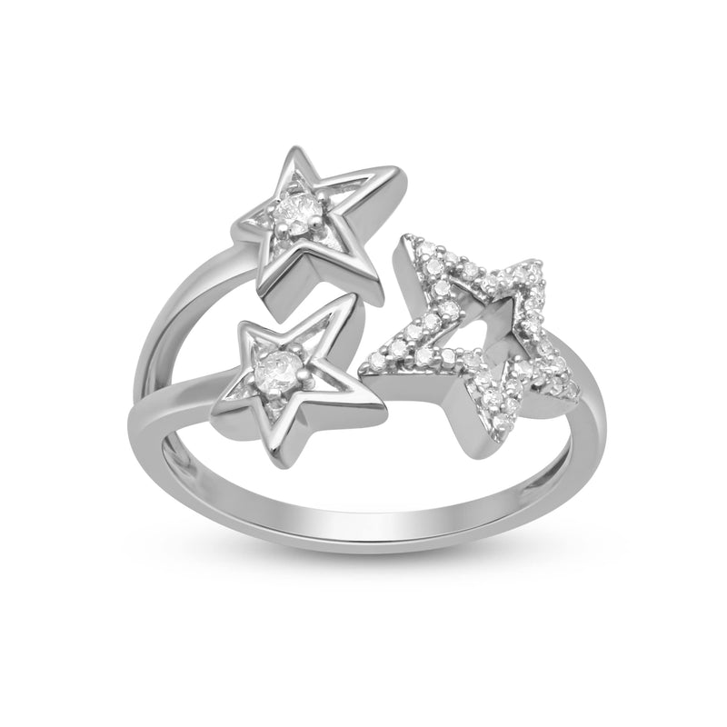 Jewelili Sterling Silver With 1/5 CTTW Diamonds Star Ring