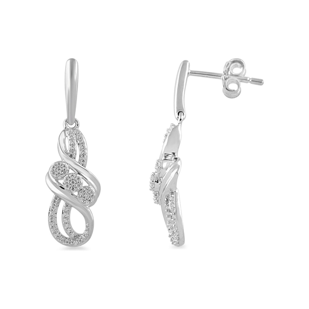 • Sterling Silver With 1/5 Cttw Natural White Diamond Dangle Earrings