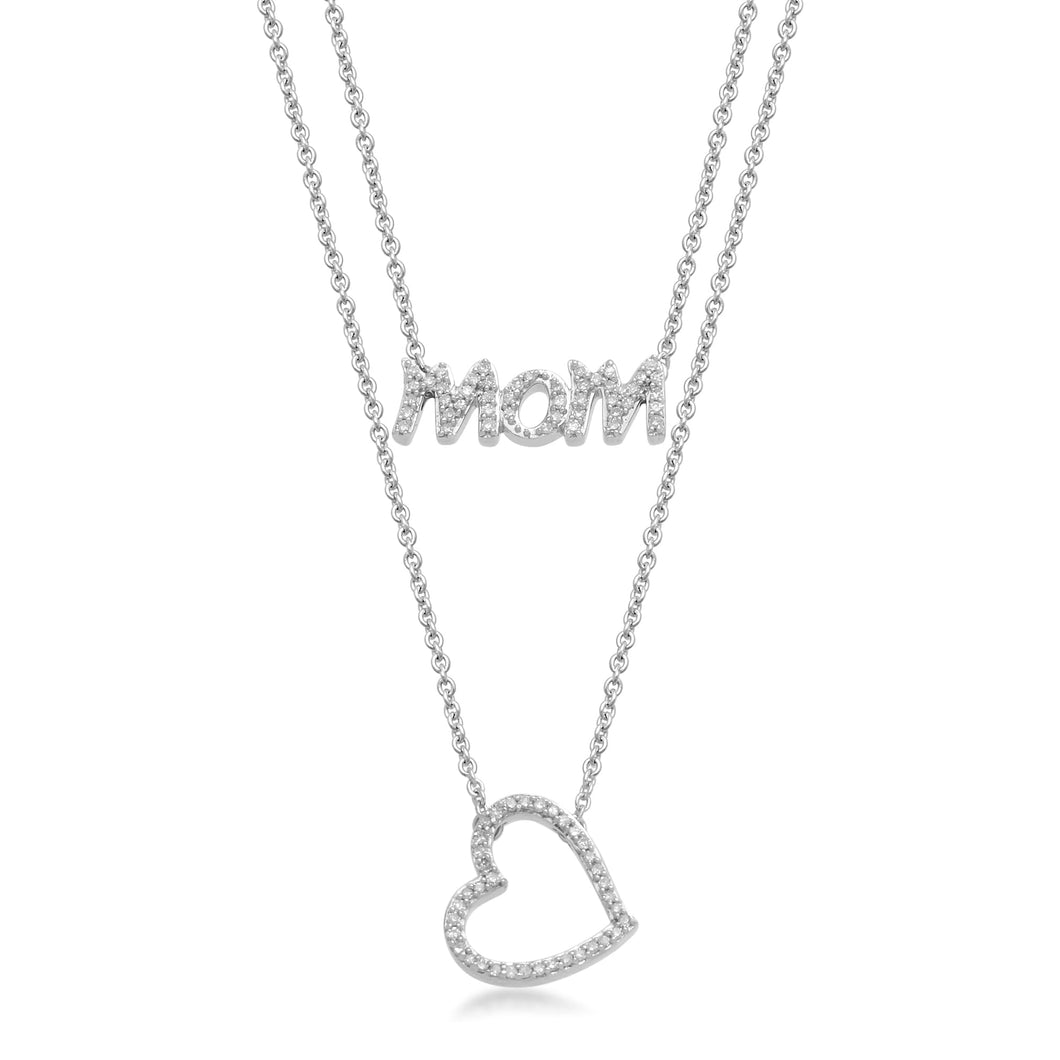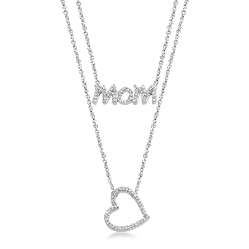 • Sterling Silver With 1/5 Cttw Natural White Diamonds MOM Heart Pendant Necklace