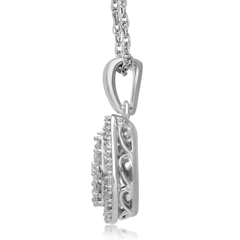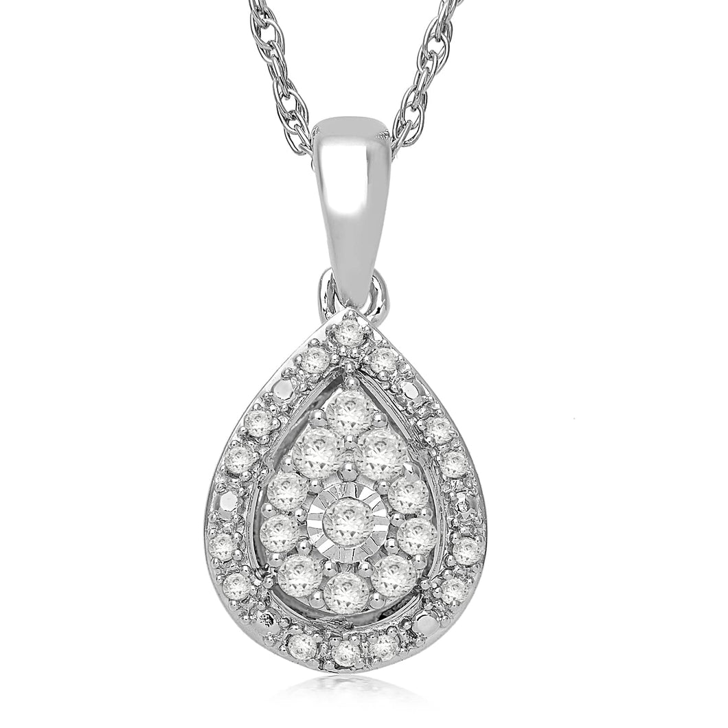 Jewelili Sterling Silver With 1/5 CTTW Natural White Round Cut Diamonds Tear-Drop Pendant Necklace