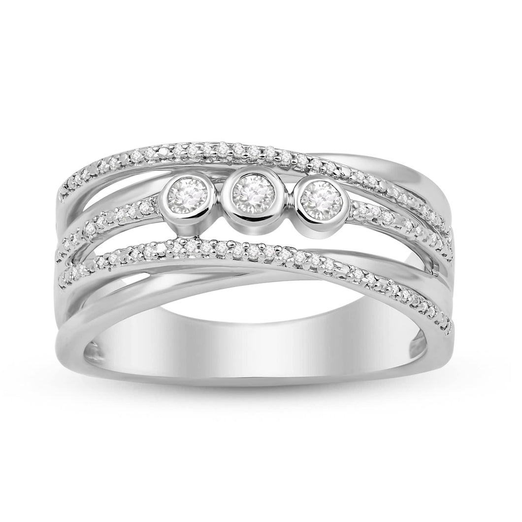 Jewelili Sterling Silver With 1/5 CTTW Natural White Round Diamonds Anniversary Ring