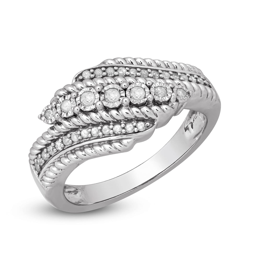 Jewelili Sterling Silver With 1/5 CTTW Natural White Round Diamonds Engagement Ring