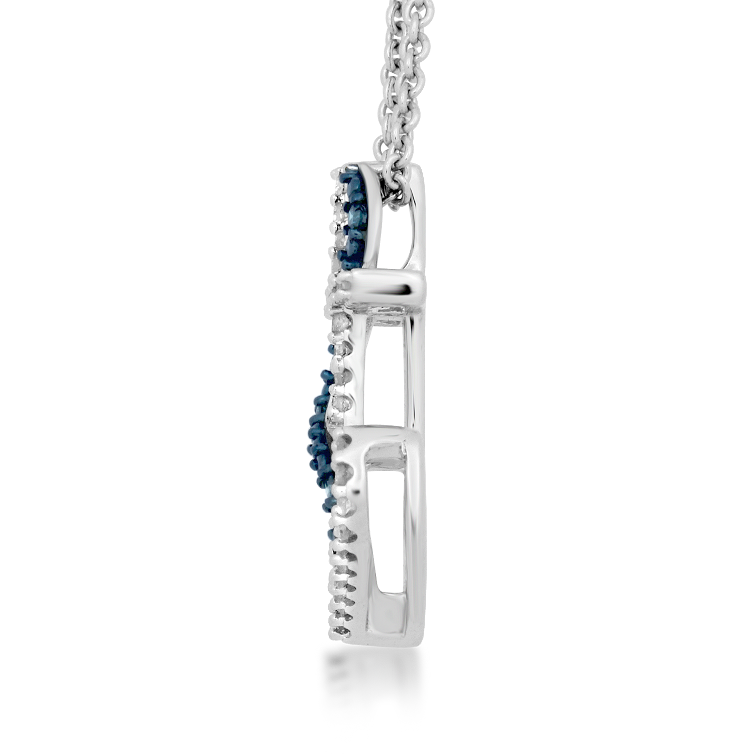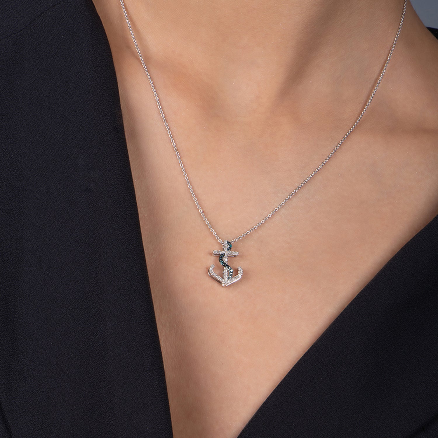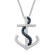 • Anchor pendant necklace in Sterling silver with 1/5 Cttw Treated Blue and Natural White Diamond, 18" Rolo chain