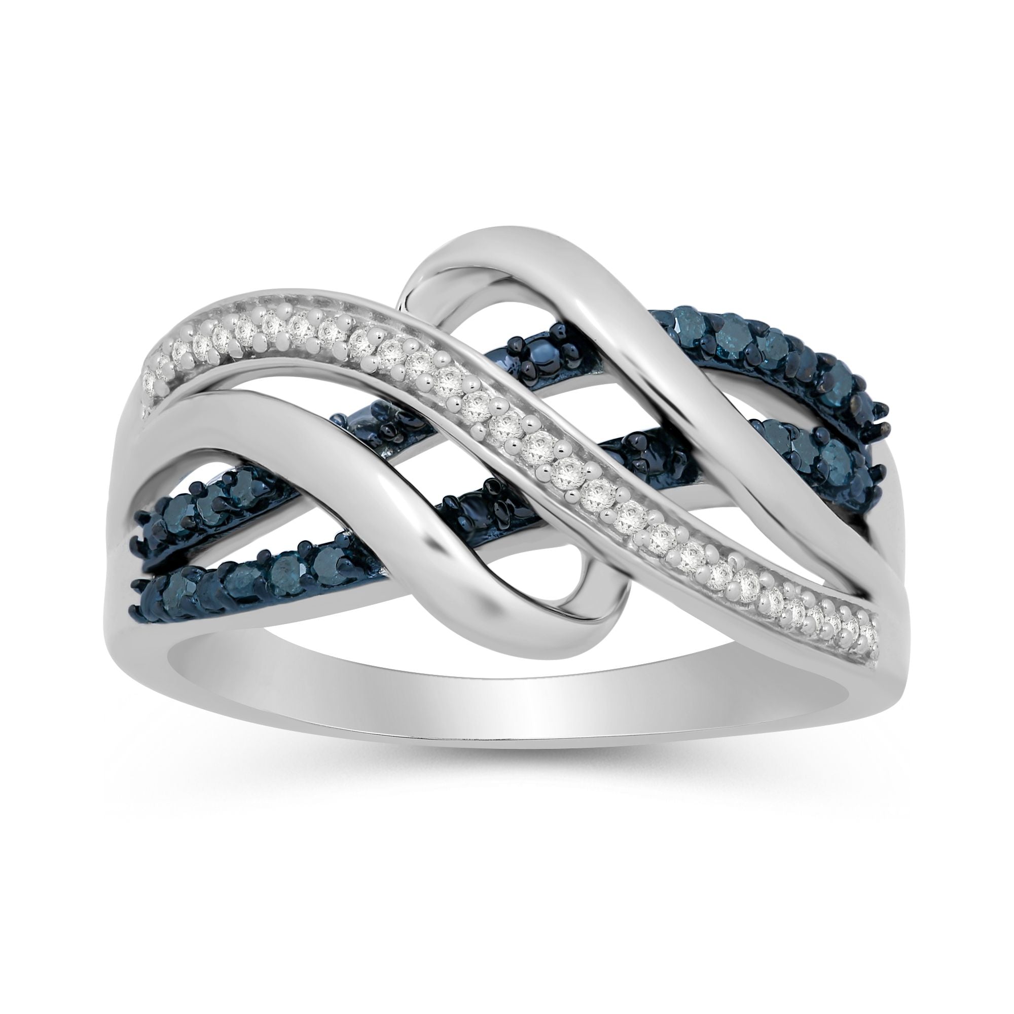 Jewelili Sterling Silver With 1/5 CTTW Treated Blue Diamonds and Natural White Diamonds Ring