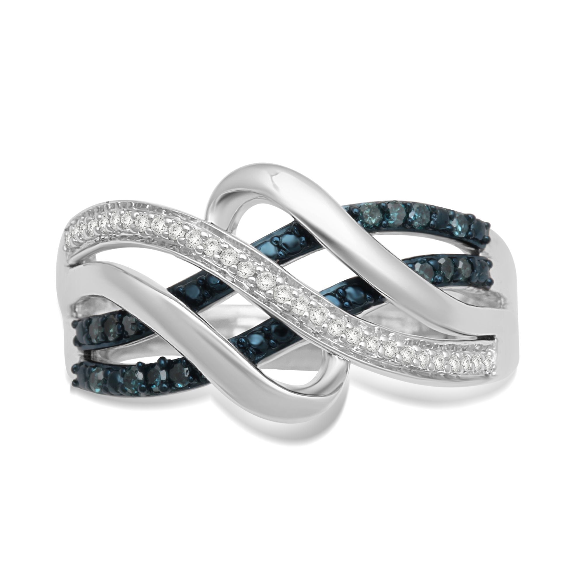 • Sterling Silver With 1/5 Cttw Treated Blue Diamond and Natural White Diamond Ring