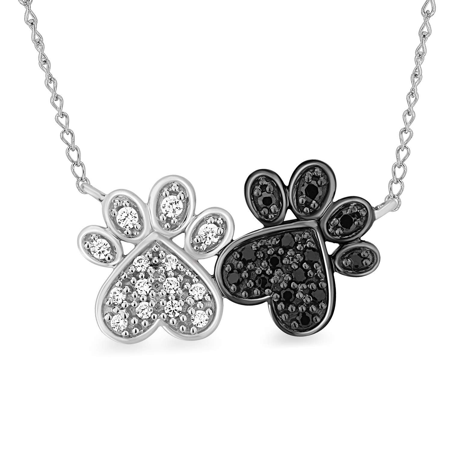 • dog paw pendant necklace with 1/5 cttw Treated Black Diamond and Natural White Round Diamond in Sterling Silver